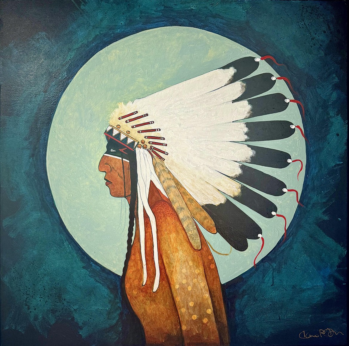 Working primarily in acrylic, ink and collage, Red Star creates powerful visual narratives. His distinctive style has earned recognition in major exhibitions across the country, with more than 100 exhibitions featuring his work throughout his career, including 40 solo exhibitions.