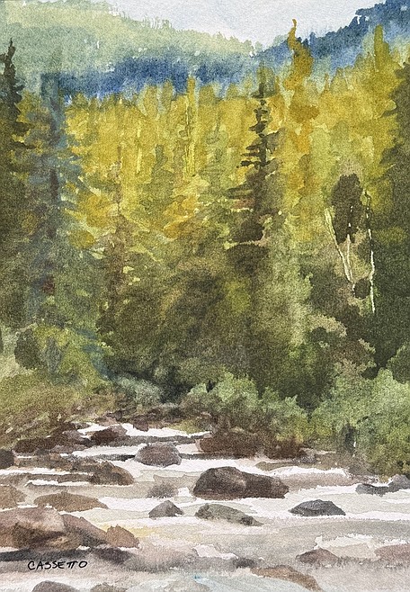• Cassetto uses her love of hiking and fly fishing to source inspiration from remote wilderness areas, transforming natural scenes into vivid, heartfelt paintings.