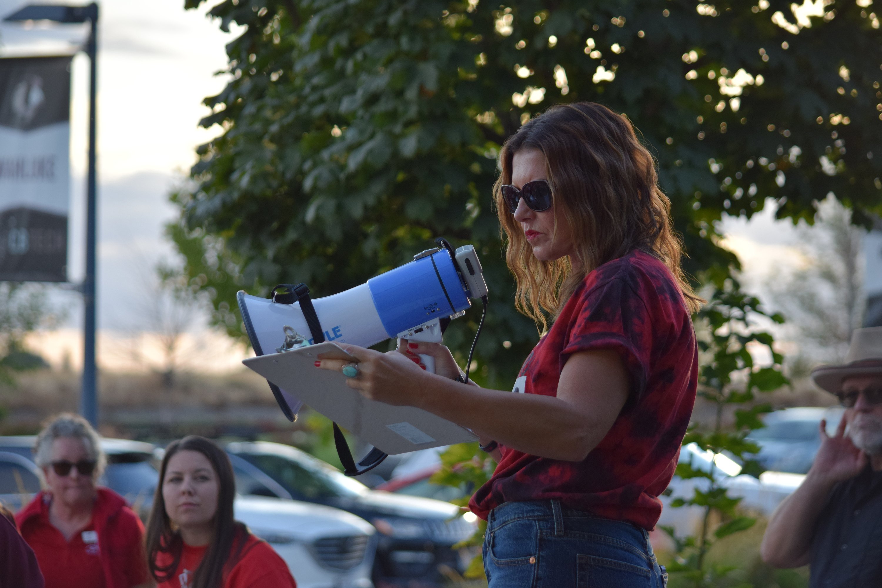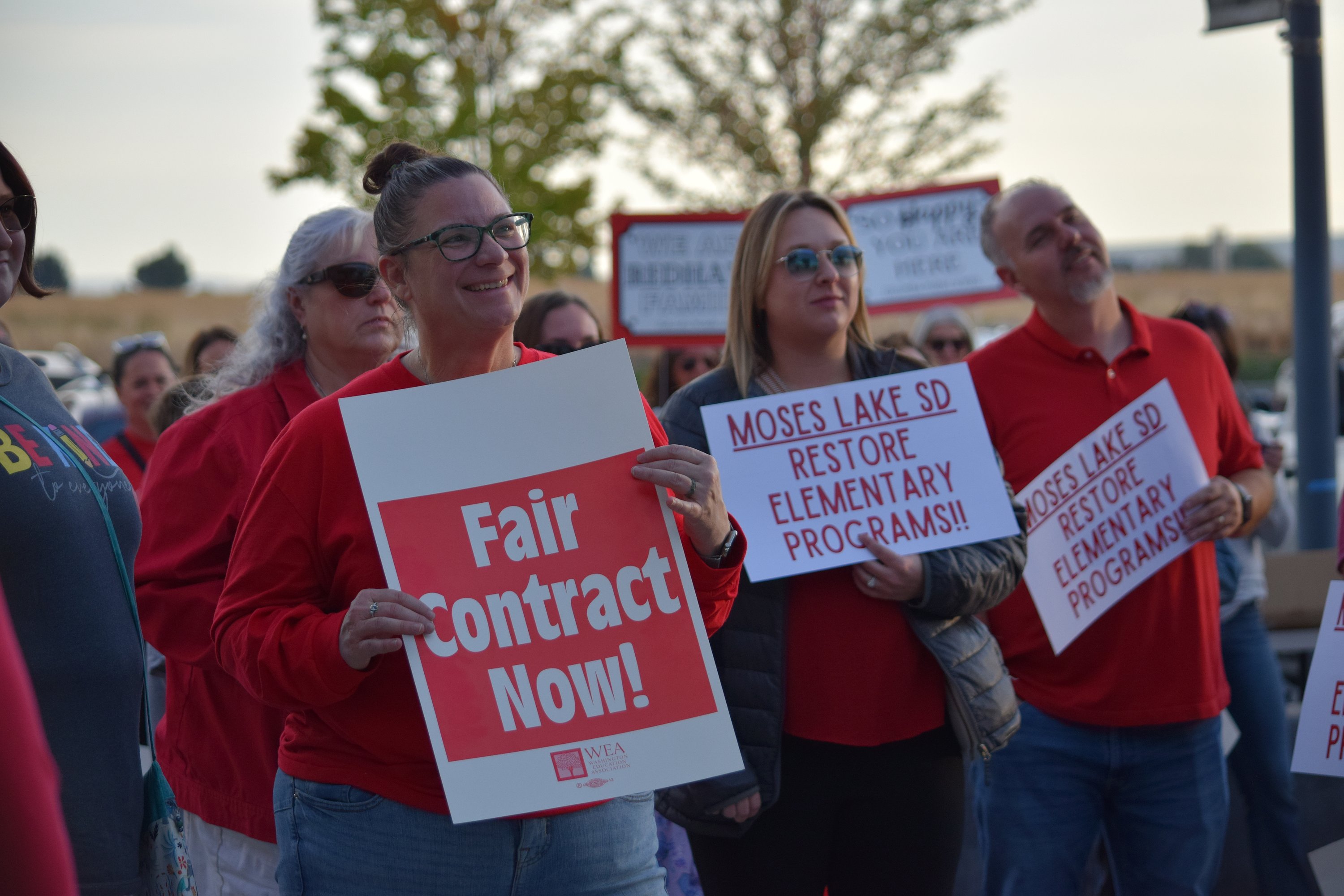 The protest was part of the teachers' union, also known as MLEA, negotiating a new contract with the Moses Lake School District. Teachers and community members have been asking for an additional 30 minutes of instructional time, restoration or establishment of state-standard physical education times and other program restorations after the district's recent financial crisis. District officials have said the timing is too soon to implement those measures, though they are planned for next school year. After a budget crisis caused by accounting errors was discovered, MLSD's reserve funding was completely eliminated. While some of that has been restored, it has not been recharged enough to warrant a return to normal spending. The district's Reserve Fund needs to be reestablished sufficiently to handle payroll, emergencies and cash flow management first.