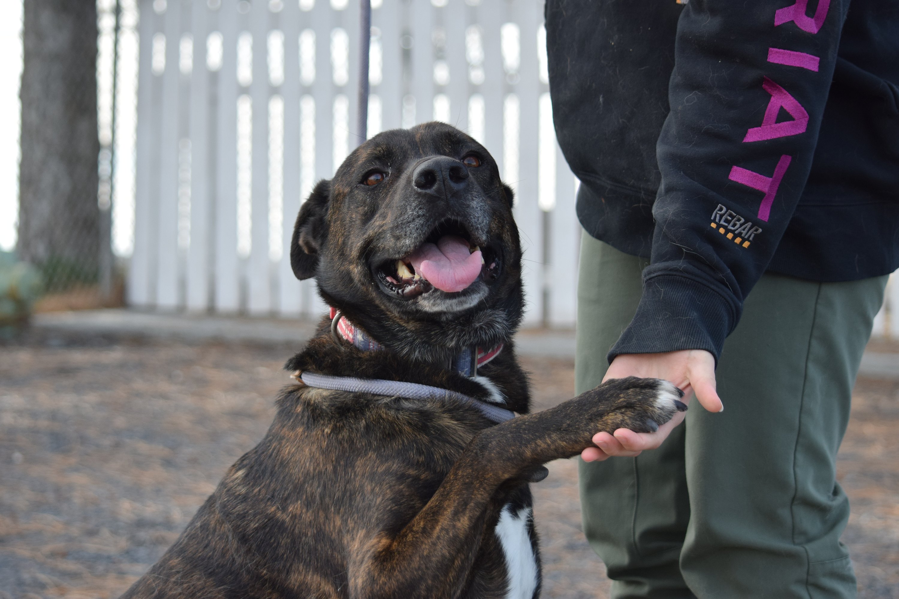 Another long-term resident deserving of recognition is Zeus. At about six and a half years old, this gentle giant is full of personality and charm — a complete transformation from the angry pooch he once was.