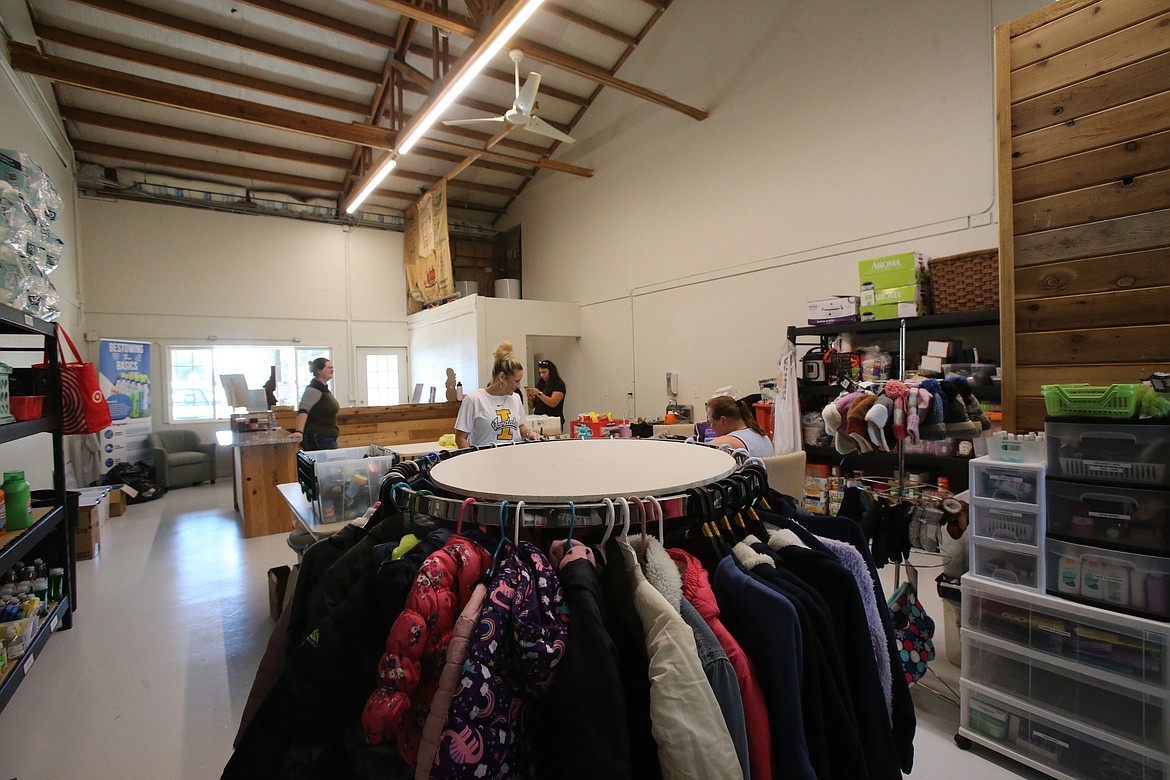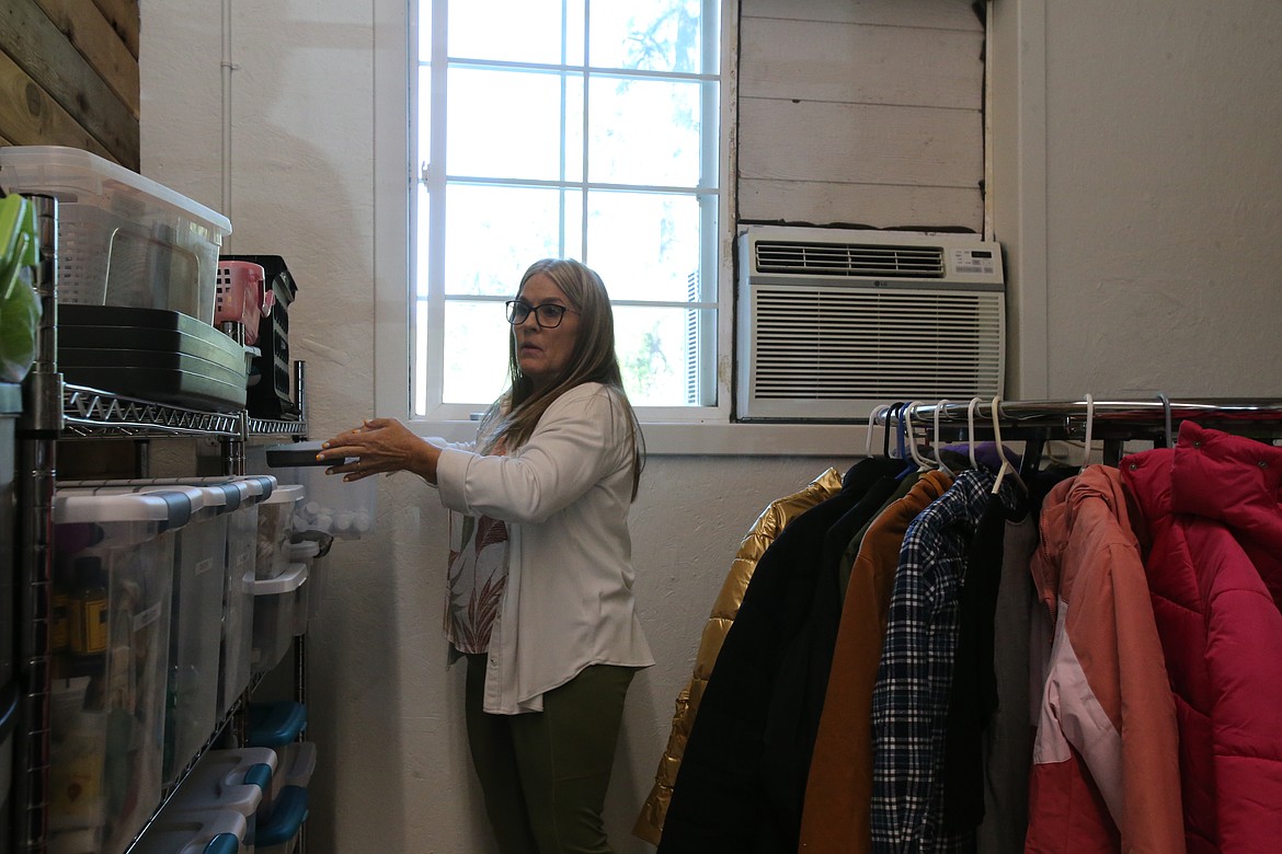 Ponnie Halstead organizes hair care products and other items Tuesday as Bestowing the Basics celebrates opening in a brick-and-mortar building. The nonprofit that has served the community through pop-up events, the local food bank and community center is now housed in a former coffee shop at 6101 E. Highway 54, Unit B, Athol.ARTICLES BY DEVIN WEEKS
