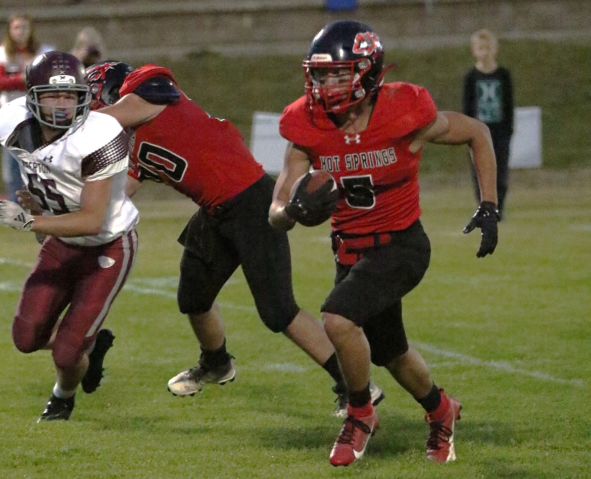 Andrew Waterbury added two touchdowns rushing in the second half and Daniel Slonaker returned a kickoff for another TD to account for Hot Spring’s 10 total touchdowns in the game.
