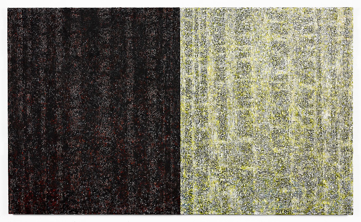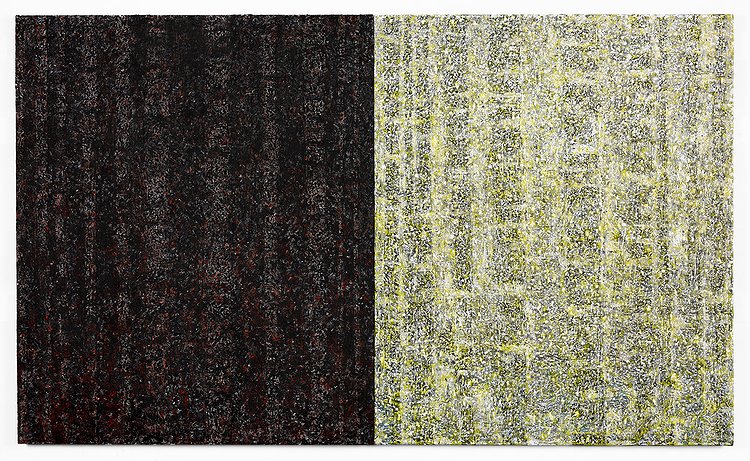 Mast’s dramatic and immersive exhibition features more than a dozen recent paintings and glass sculptures, which Chacón describes as a meeting place between art and nature. Her large-scale, abstract paintings are in dialogue with sculptures that appear to be obsidian stones set on slim metal rods. These “stones” are made of PEM glass, produced from recycled materials created under heat and pressure to form shimmering, rock-like objects.