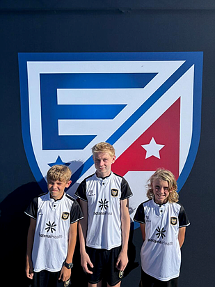 Full caption: From left, Caleb Drube, SJ Noble and Xander Conner, dubbed the "Sandpoint Trident", recently competed in the 13U Elite Academy Fall Showcase held Sept. 26 through Sept. 28 at Epic Sports Park in Provo, Utah. The prestigious event featured 65 teams from Washington, California, Nevada, Utah, Idaho, Arizona, Hawaii, and Colorado. Playing for the Sting Soccer Club of Coeur d'Alene, which previously secured second place at the Idaho State Cup this past spring and were crowned champions at the Northwest Cup this fall, the trio finished the event with a resounding 4-0 victory over Los Angeles Surf Futures, a thrilling 3-3 draw with Albion SC Las Vegas, and a competitive 1-1 tie with Total Futbol Academy of Orange County, Calif. Thanks to the efforts of Drube, Noble and Conner, the Sting were one of only 17 teams to remain undefeated throughout the competition.