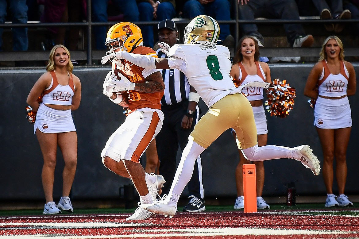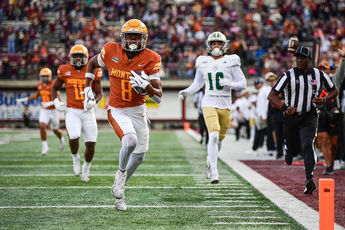 Grizzlies wide receiver Michael Wortham (6) catches a 24-yard touchdown reception in the fourth quarter against Cal Poly at Washington-Grizzly Stadium on Saturday, Oct. 11. (Casey Kreider/Daily Inter Lake)