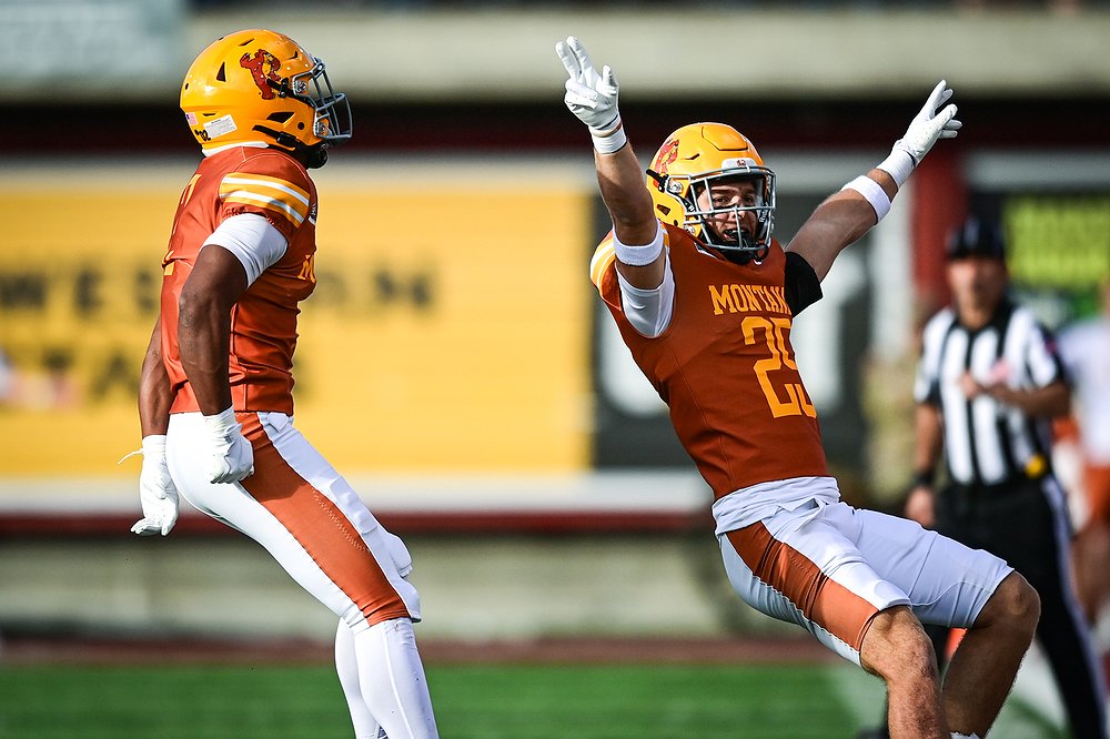 Grizzlies safety Brady Beaner (25) celebrates after a play on defense against Cal Poly at Washington-Grizzly Stadium on Saturday, Oct. 11. (Casey Kreider/Daily Inter Lake)