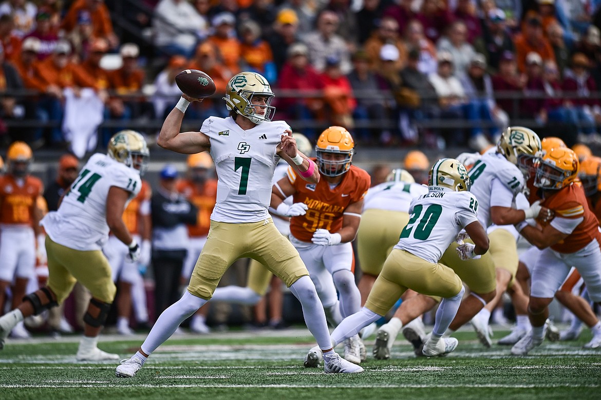 Cal Poly quarterback Ty Dieffenbach (7) drops back to pass against Montana Washington-Grizzly Stadium on Saturday, Oct. 11. (Casey Kreider/Daily Inter Lake)