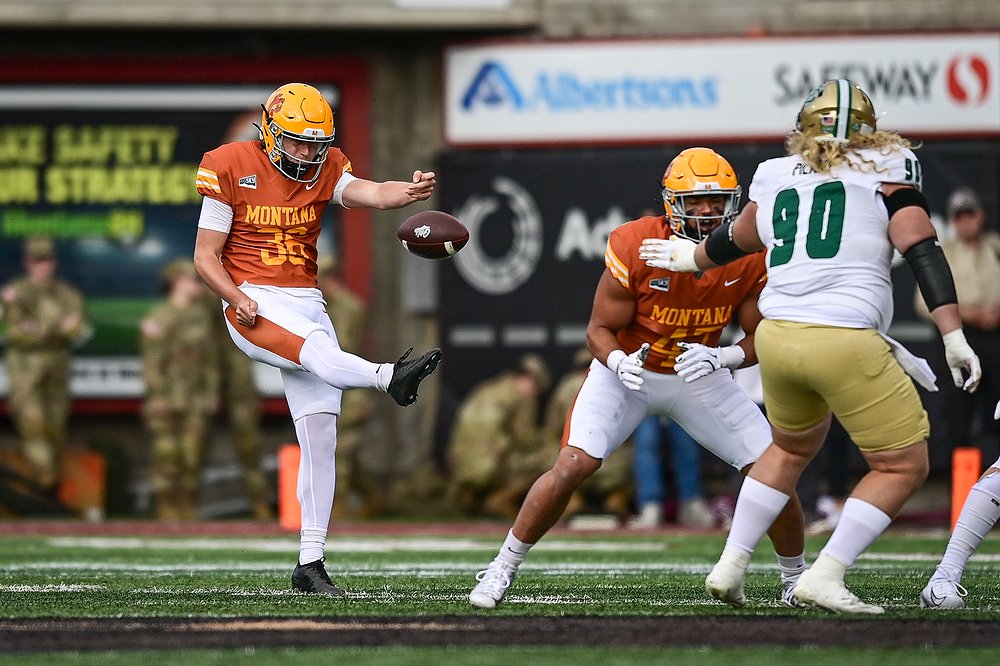 Grizzlies punter Ty Morrison (36) punts in the second quarter against Cal Poly at Washington-Grizzly Stadium on Saturday, Oct. 11. (Casey Kreider/Daily Inter Lake)
