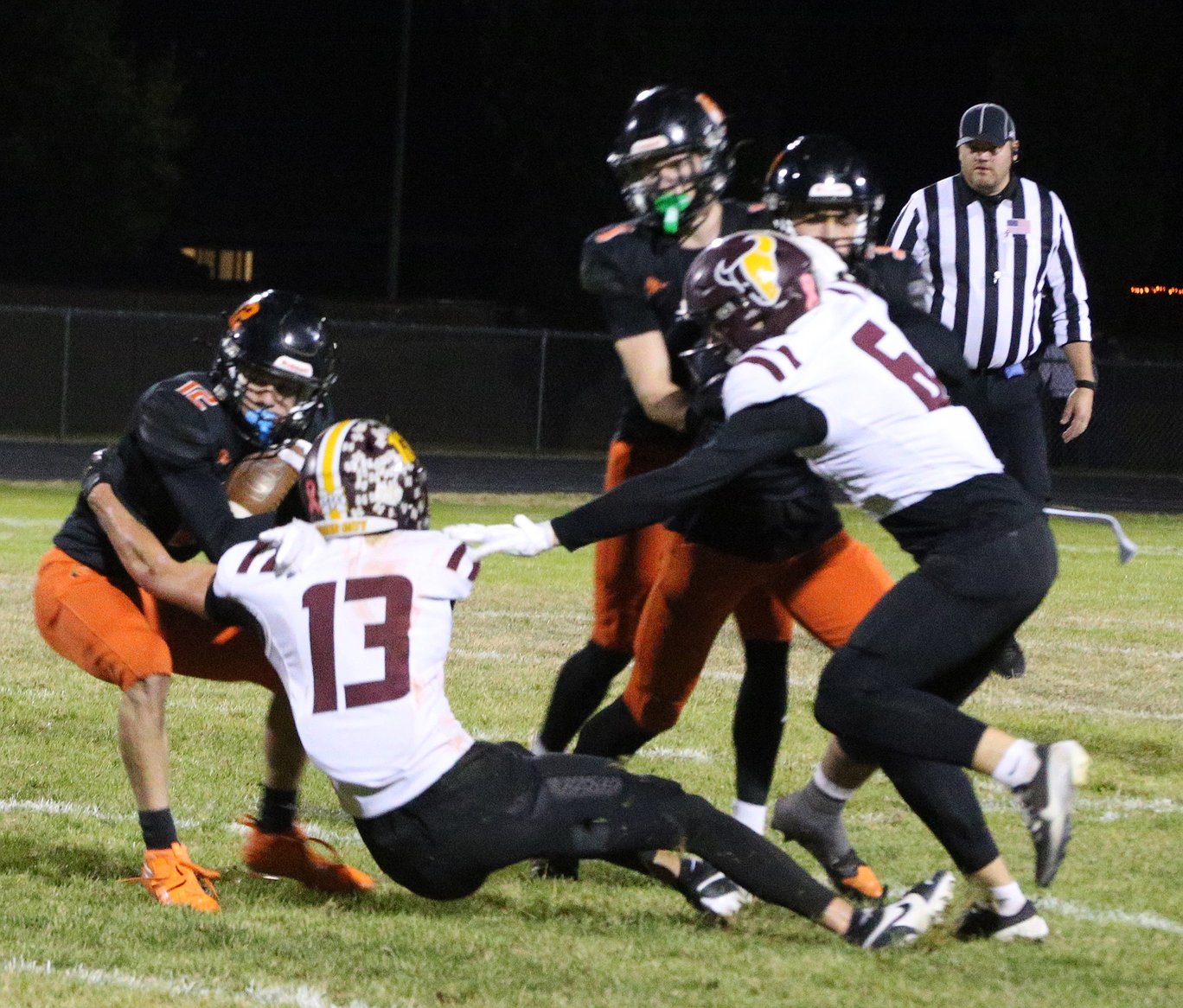 Post Falls was driving late in the first half, but turned the ball over at midfield on a fumble, allowing Moses Lake to score on a 9-yard touchdown pass from Jay to Carter Anderson, one of five touchdown receptions in the game.
