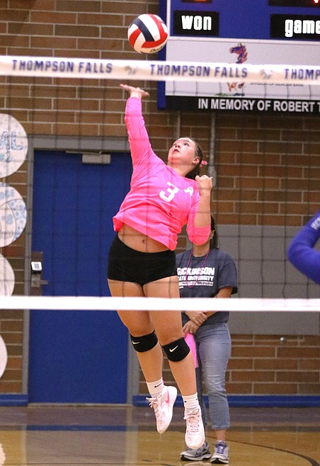 Hannum finished the deer Lodge match with 21 kills, three stuff blocks, three aces, 13 digs and 14 set assists, Deal added 12 kills, two blocks, three aces, eight digs and 17 assists, Addi Pardee six kills, 10 digs and two aces, Annalise Fairbank three Ks and 16 digs, Claridge two blocks and six digs, Audrey Fairbank with five digs and Cora Anderson a stuff block.