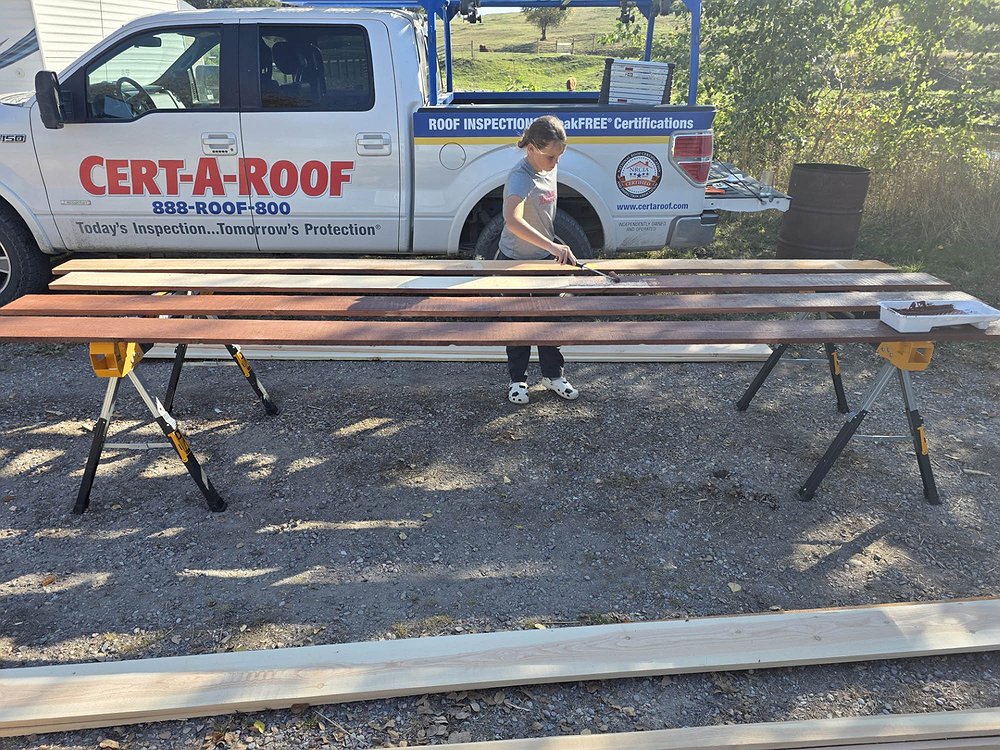 Paul Watrous’s daughter Autumn stains wood for the repair. (Paul Watrous Photo)