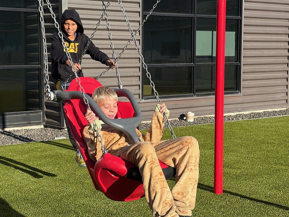 The playground features adaptive swings that allow students with limited mobility to enjoy the same experiences as their peers and includes unique elements such as specially designed cocoons meant to provide a sensory retreat for children needing a calming space.