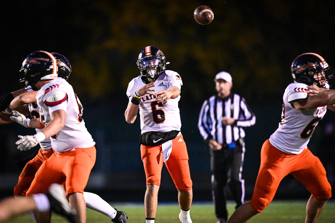 Flathead quarterback Eli Coopman (6) drops back to pass in the first quarter against Glacier at Legends Stadium on Thursday, Oct. 16. (Casey Kreider/Daily Inter Lake)