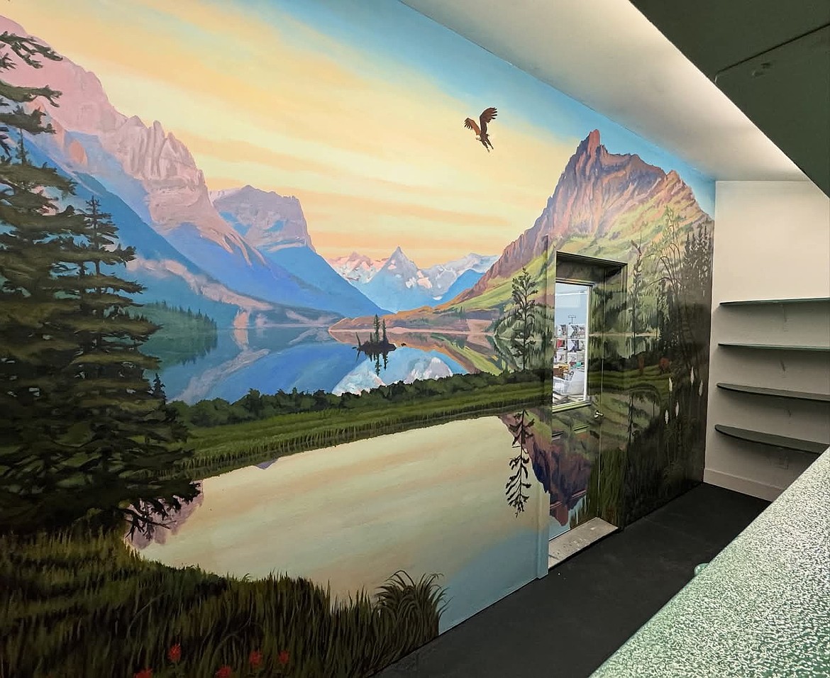 Muralist Joel Niles donated the painting and will soon be holding an art show there, according to Orsolini. His landscape paintings of Glacier National Park lined the walls in preparation.