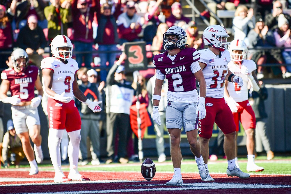 RECEIVING: Sacred Heart — Payton Rhoades 6-2, Teagan Brown 4-54, Dean Hangey 5-51, Jason Palmieri 4-26, Jimmy Casey 1-11. Montana — Wortham 7-132, Korbin Hendrix 1-49, Fonoti 3-33, Jordan Dever 1-30, Blake Bohannon 2-25, Evan Shafer 3-23, Brooks Davis 2-20, Drew Deck 2-17, Josh Gale 3-17, Gillman 2-9, Rocker Jr. 1-minus 6.
