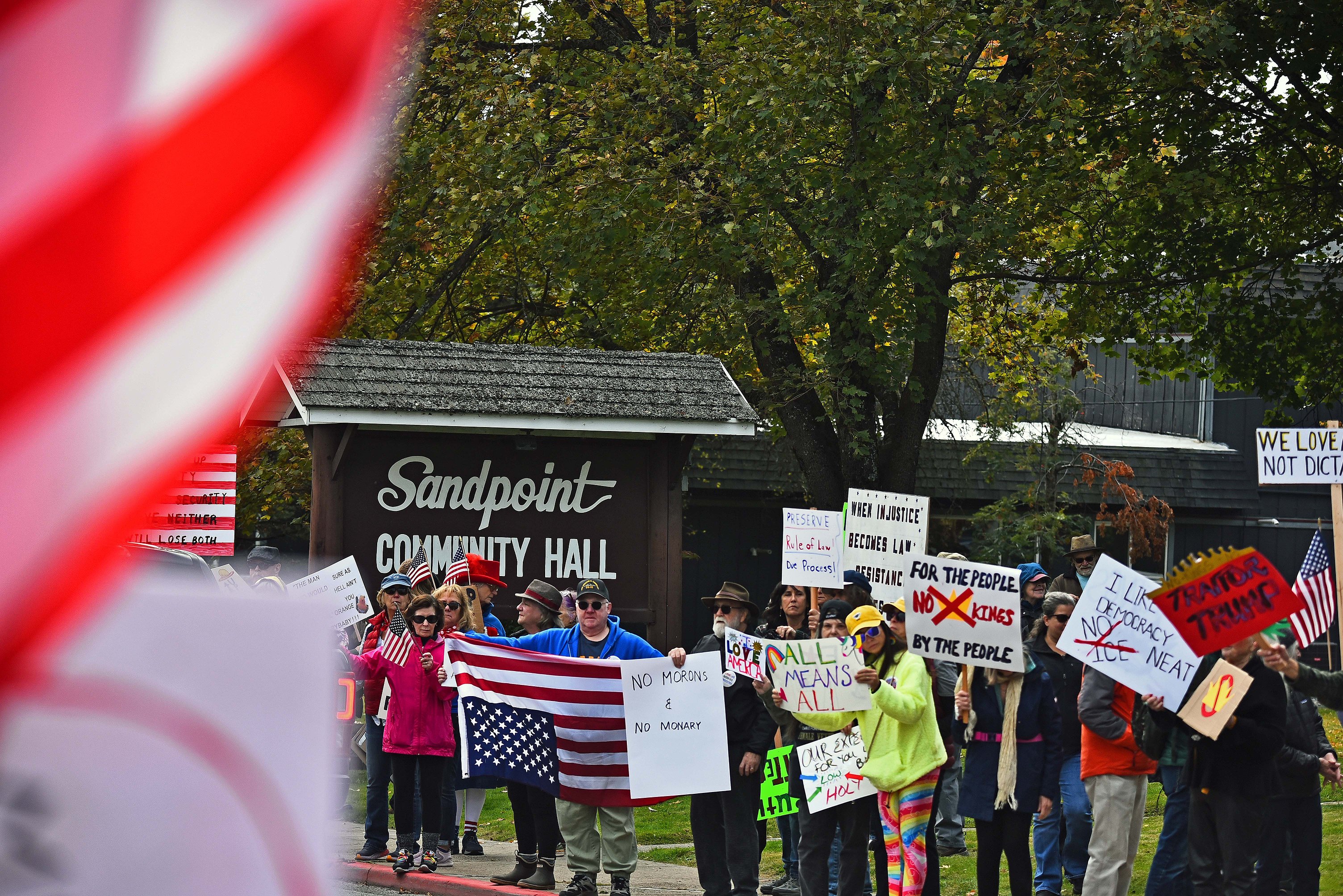“People are here to support the Constitution and the rule of law,” said Rachel Castor, one of the Sandpoint rally’s organizers. “We’re all worried. People are worried that [President Donald] Trump is creating rights for himself that are above the law and above what the Constitution allows the president to have. The actions are concerning if we want to keep a democracy.”