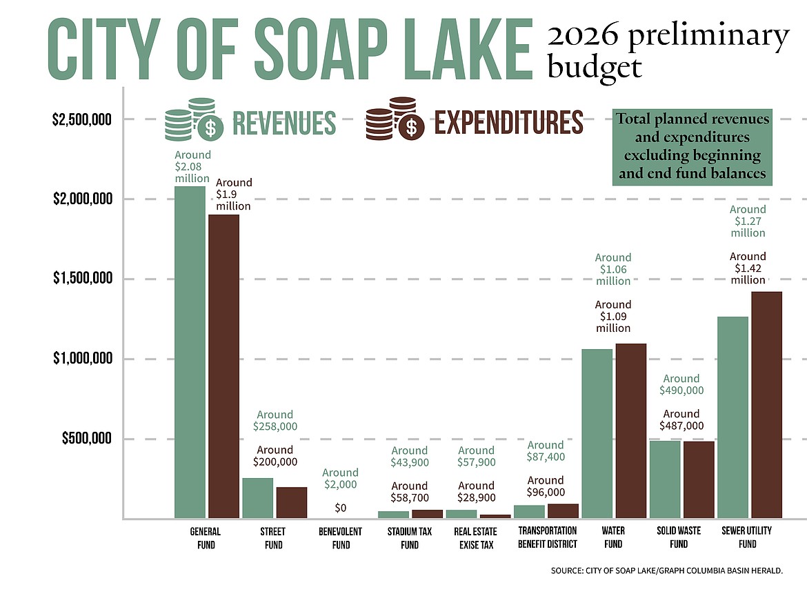 Soap Lake’s preliminary budget plans for around $5.4 million worth of revenue and around $5.3 million worth of expenditures.