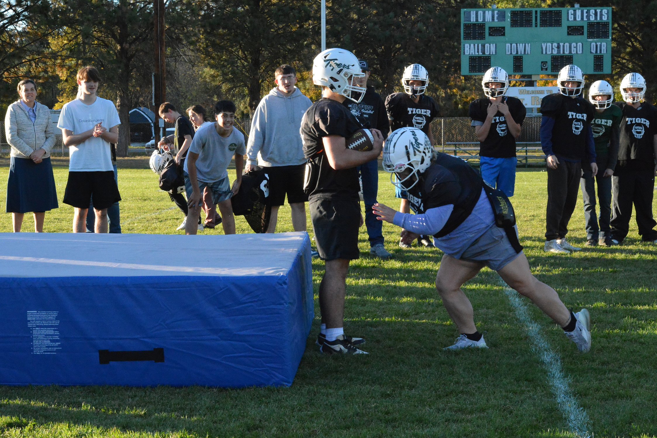 The annual Moms in Pads fundraiser was held on Oct. 15 to raise funds for maintenance on the team's helmets. Over a dozen mamas sported damp and smelly football pads and jerseys to playfully take down their sons on a mat in the middle of the football field. If the players flinched or tried to move, moms got a redo.