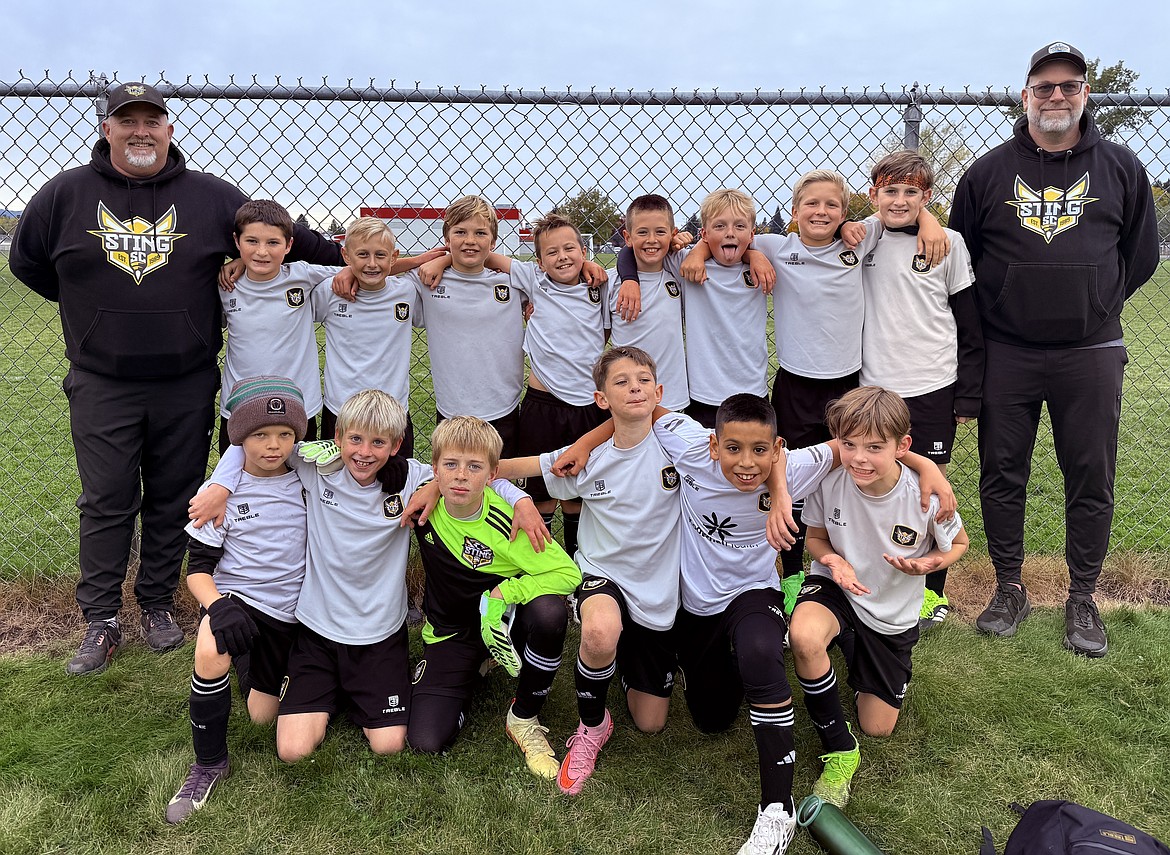 Courtesy photo The Sting Soccer Club 15 Boys Academy Yellow soccer team defeated Washington East Surf B15 Royal 4-0 last weekend. From left are assistant coach Robin Bundy, Porter Caten, Maverick Woodcock, Flynn Bundy, Jacob Barragan, George Jerkins, Bode Hebener, Jake Mitchell, Maddox Hoy, Thomas Davis and Silas Ballou.