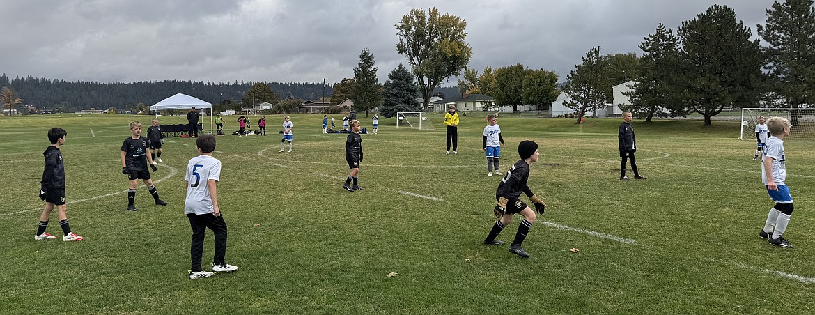 Photo by KATHY STERLING The Sting SC 2016 Boys Yellow soccer team played a Sunday morning fall league game against the Washington East Surf B16 Elite Royal boys team at the Plante's Ferry Sports Complex in Spokane Valley, falling 8-1. The Sting goal was scored by Jaxson Matheney with an assist by Atlas Lepley. Pictured from left in the black jerseys are Xavier Sousley, Isaak Sterling, Atlas Lepley, Elijah Cline, Lincoln Sargent and Jaxson Matheney.