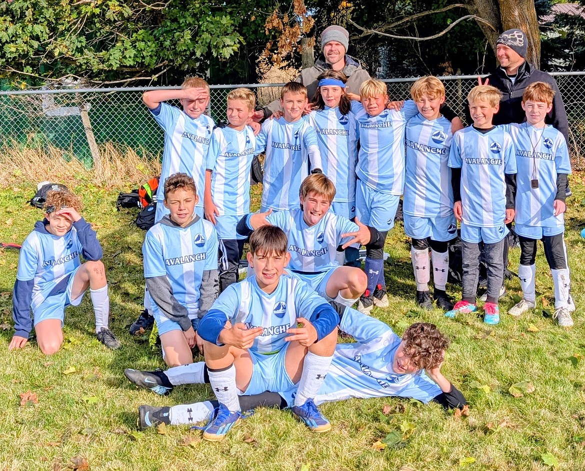 Courtesy photo The Avalanche U10/11 boys Blue soccer team beat Hells Canyon FC Rapids 6-2 on Saturday at the Honeysuckle fields in Hayden. Avalanche goals were scored by Max Stover (2), Emerson Cousino (3) and Roman Cortes (1). In the front is Max Stover; second row from left, Coleman Underdown, Ebbet Vucinich, Roman Cortes and Cash Fowler; third row from left, Cole Birdsell, Ryker Bailey, Talmadge Greene, coach Thomas Stover, Peyton Pecor, Emerson Cousino and assistant coach Drew Grady; and rear, Ethan Braga.
