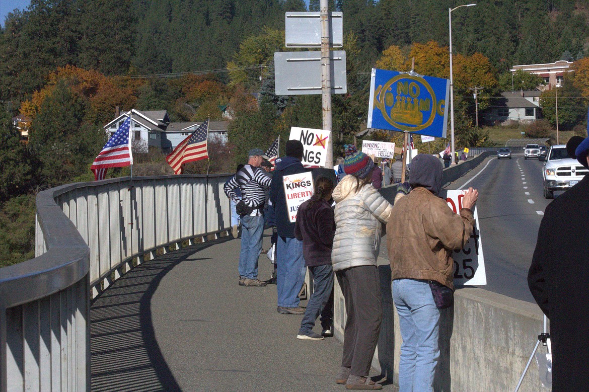 BONNERS FERRY — A “No Kings” rally and counter-protest were held Saturday, Oct. 18, on the Kootenai River Bridge in Bonners Ferry. The event was peaceful, as both protesters and a small group of counterprotesters exercised their right to demonstrate.