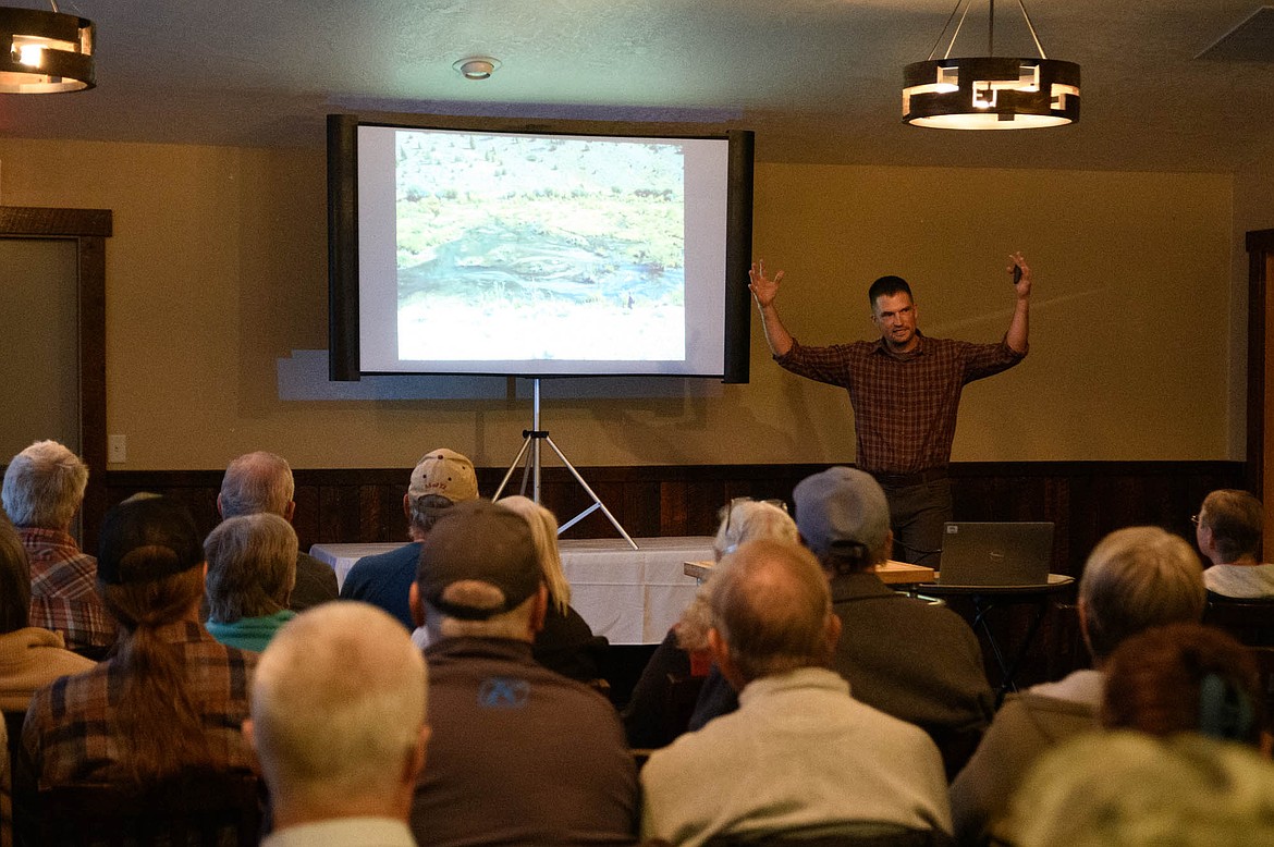 Ritter explained how beaver dams hold water, slow it down, and bolster water resources for the dry season. He said not one beaver dam or one colony of beavers can fix these stream issues, but thousands to millions of beavers placed on headwater streams can help the distribution of snowmelt.