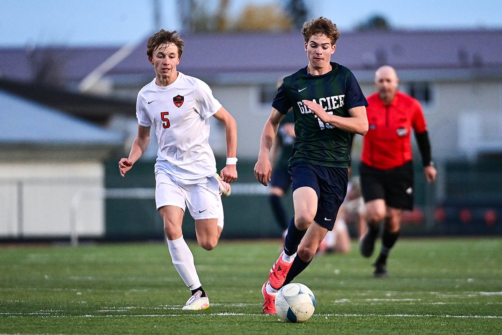 Brecken Evenson picked up Glacier’s first red card in the 53rd minute after being issued his second yellow for a tackle around midfield. Tayton Hardman was sent off in the 96th minute with a straight red for a bad foul.