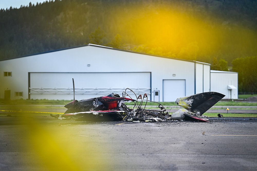 The Aug. 11 wreck sent black smoke up over South Kalispell and damaged several parked planes. The pilot, identified as Scott Campbell by airport officials, and the three other people aboard walked away from the crash largely unscathed. Two of the passengers suffered minor injuries, according to city officials.