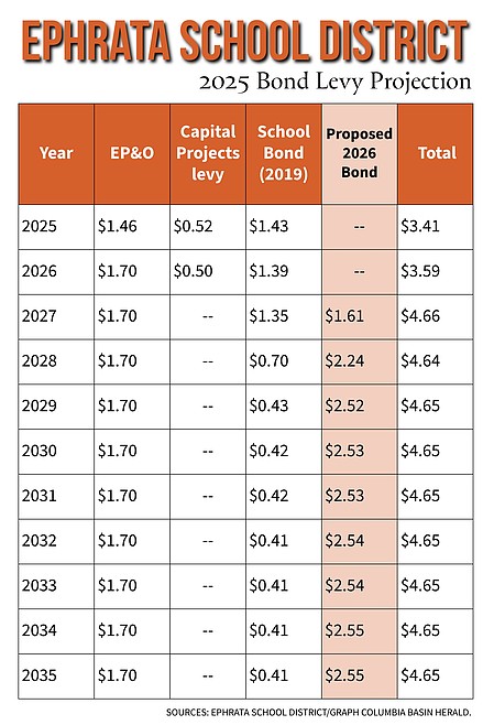EPHRATA – The Ephrata School District Facility Study Group proposed a $75 million bond to the Ephrata School Board on Monday night. The board unanimously approved Superintendent Ken Murray to move forward with a bond resolution for the board to vote on. If passed by the board, the bond will appear on the February 2026 ballot.