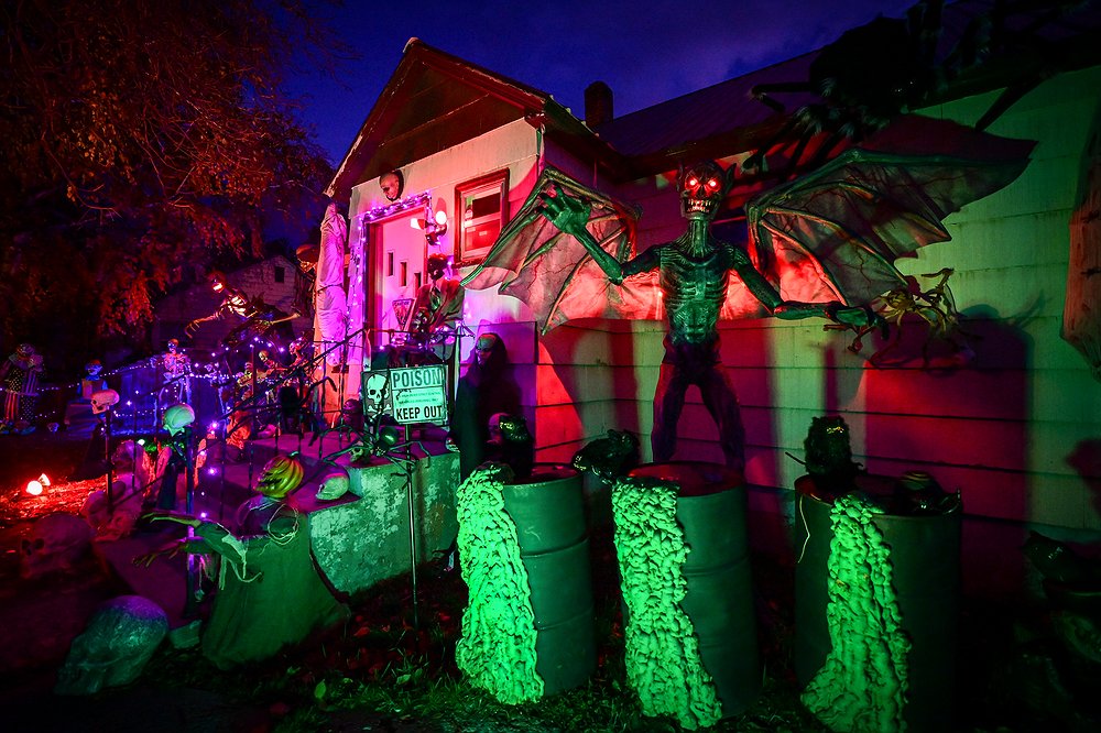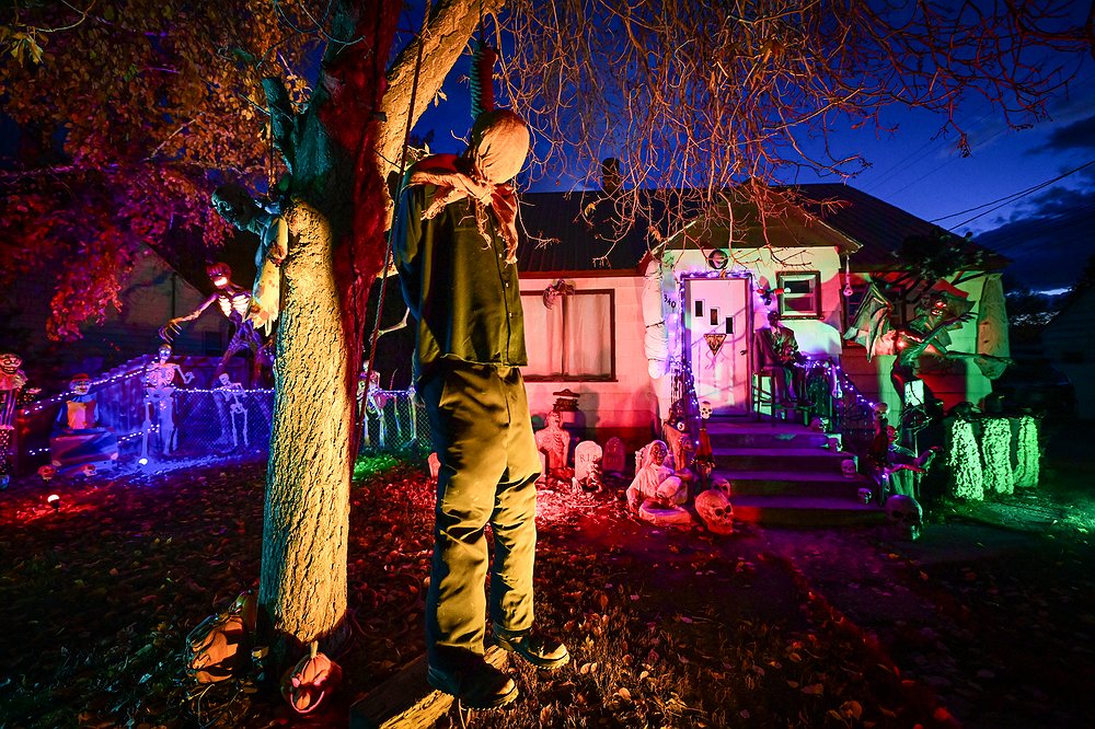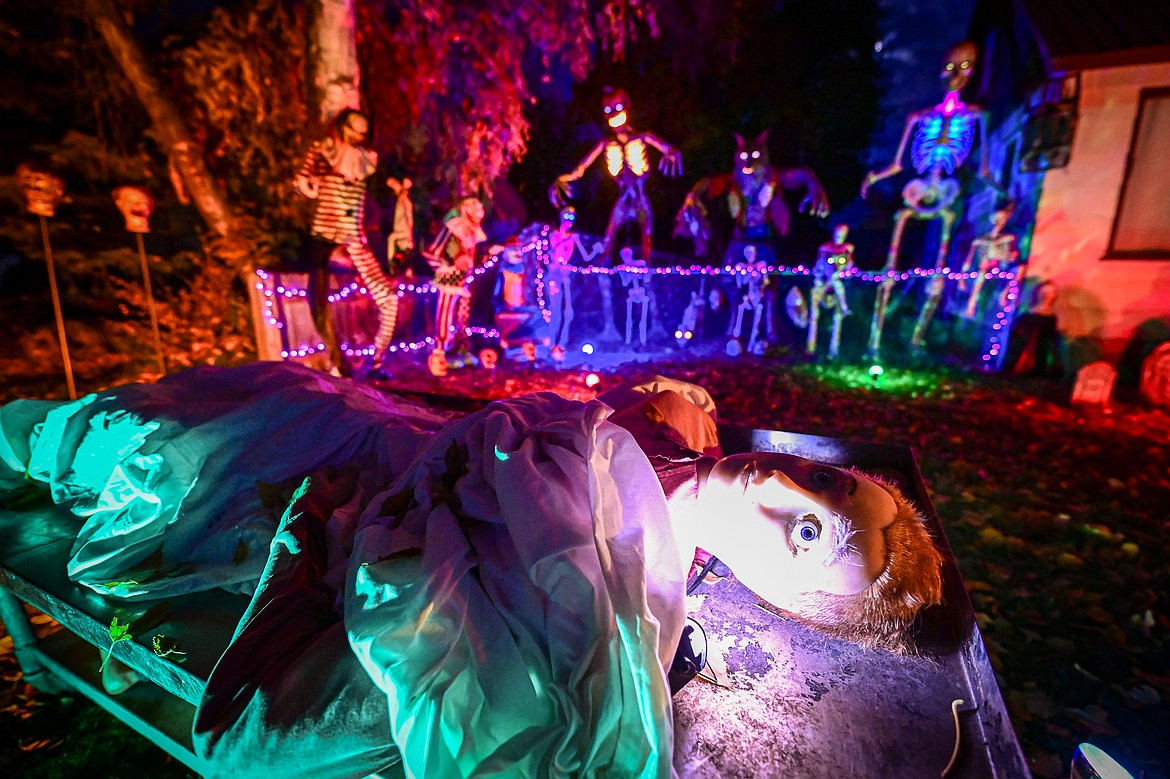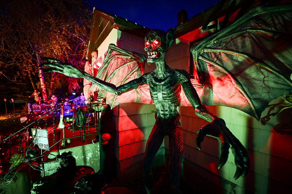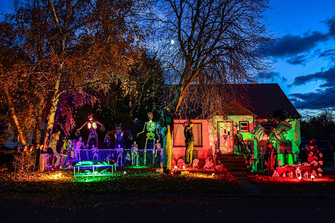 Kalispell resident Trevor Caudill has been decorating his front yard at 340 East California Street for Halloween for the last 12 years. Each year he adds a few pieces to the elaborate, neon-lit display divided into sections adorning his front yard.