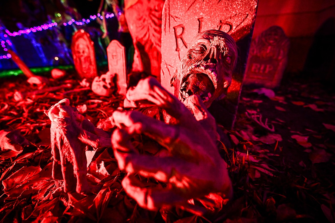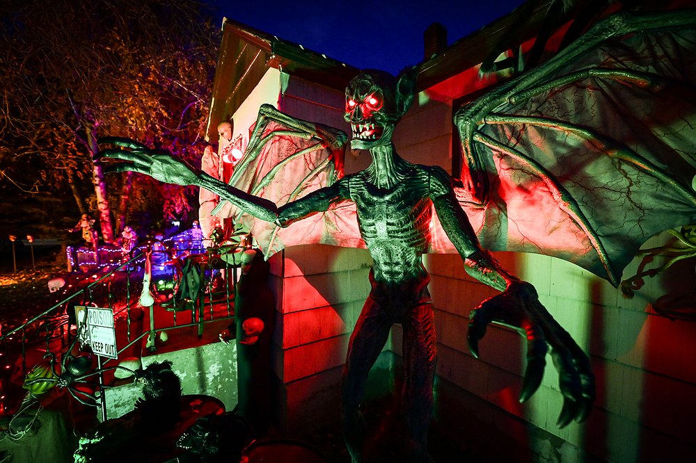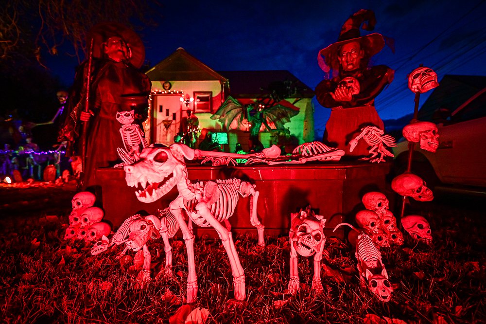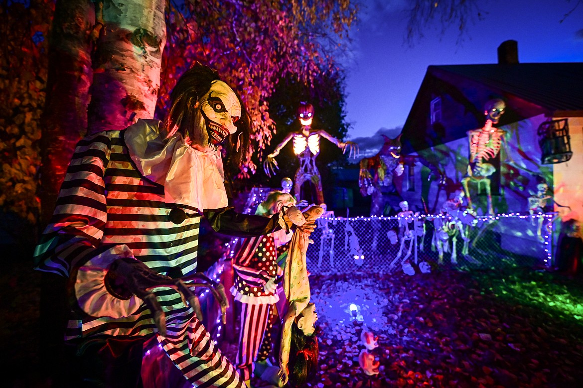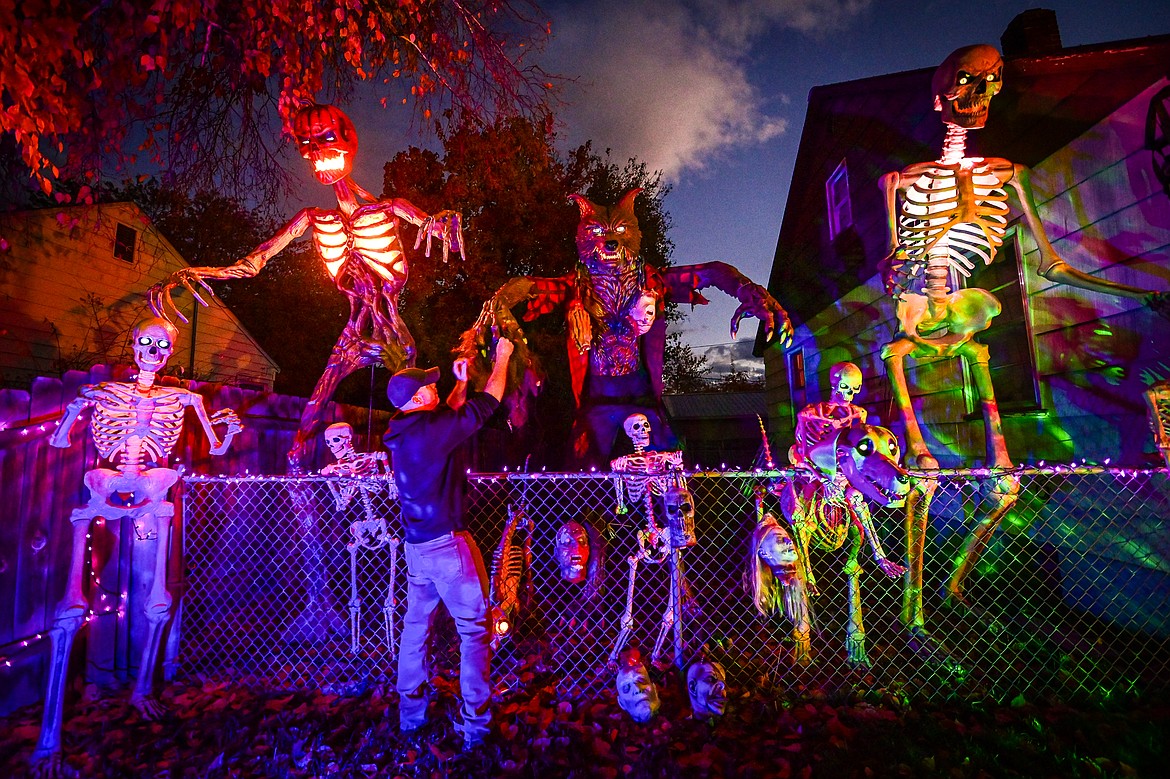 Kalispell resident Trevor Caudill has been decorating his front yard at 340 East California Street for Halloween for the last 12 years. Each year he adds a few pieces to the elaborate, neon-lit display divided into sections adorning his front yard.