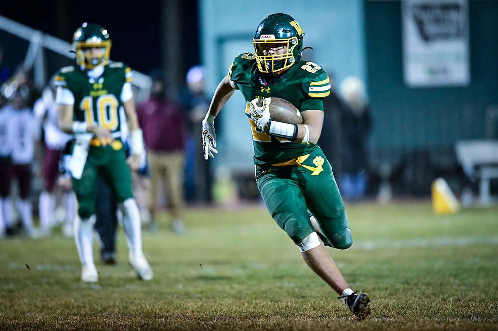 Whitefish running back Cole Moses (23) scores a touchdown on a 10-yard run in the third quarter against Butte Central in a Class A playoff game at Memorial Field on Friday, Oct. 31. (Casey Kreider/Daily Inter Lake)