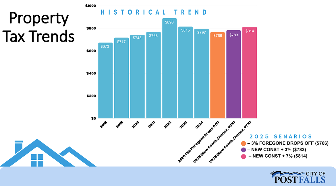 Deputy administrator Warren Wilson noted that Post Falls homeowners will likely see a lower tax bill for the average home.