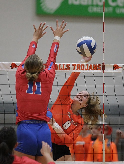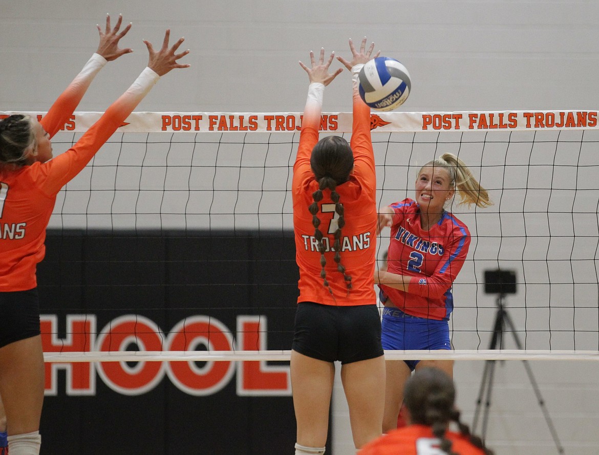 POST FALLS — The Post Falls Trojans captured the first set, but it was all Coeur d’Alene after that as the Vikings rolled to a 20-25, 25-17, 25-17, 25-15 victory in the 6A Inland Empire League opener for both teams Tuesday night at The Arena.