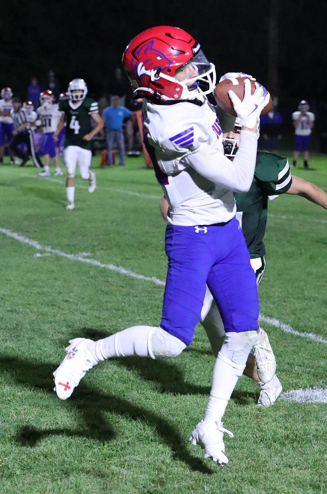Continuing the back-and-forth battle, Superior again marched down the field and managed to score with only eight seconds left in the half on a two-yard pass from Richards to Cataldo, and Richards added the two-point run to put the Bobcats up 30-20 at the half.