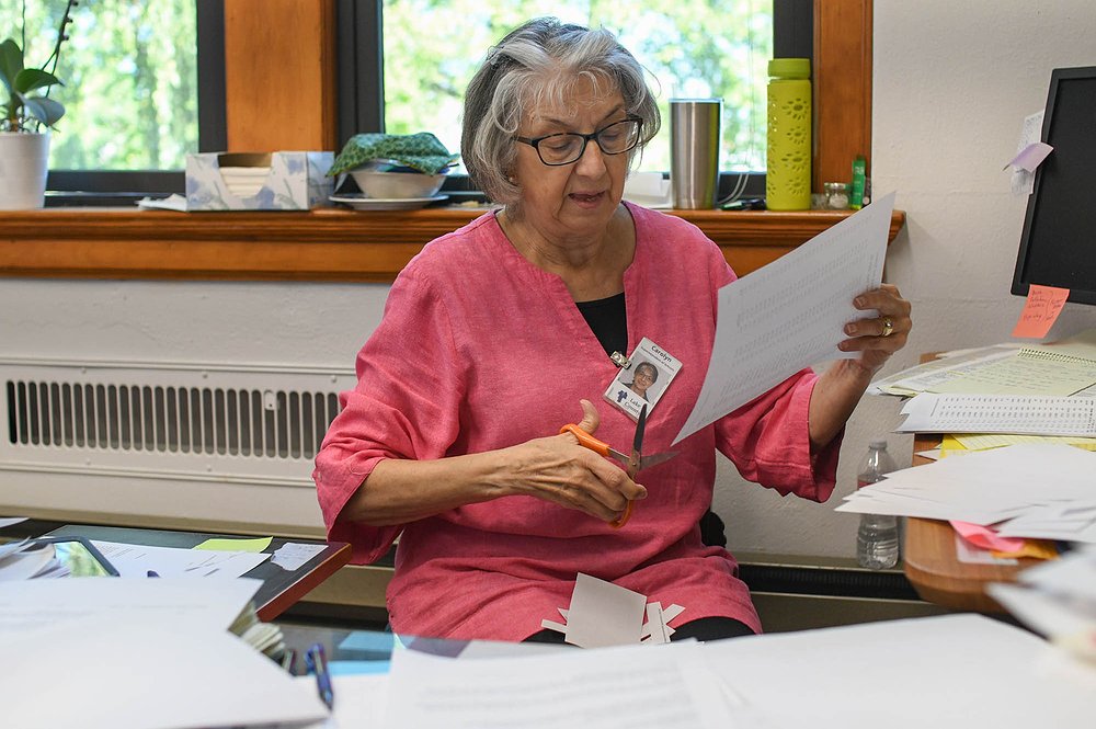 Carolyn Hall, the Superintendent of Schools for Lake County, gets ready for the school year to kick off. It’s a busy time of year for Hall with all the budget paperwork running through her office. (Emily Messer/Leader)
