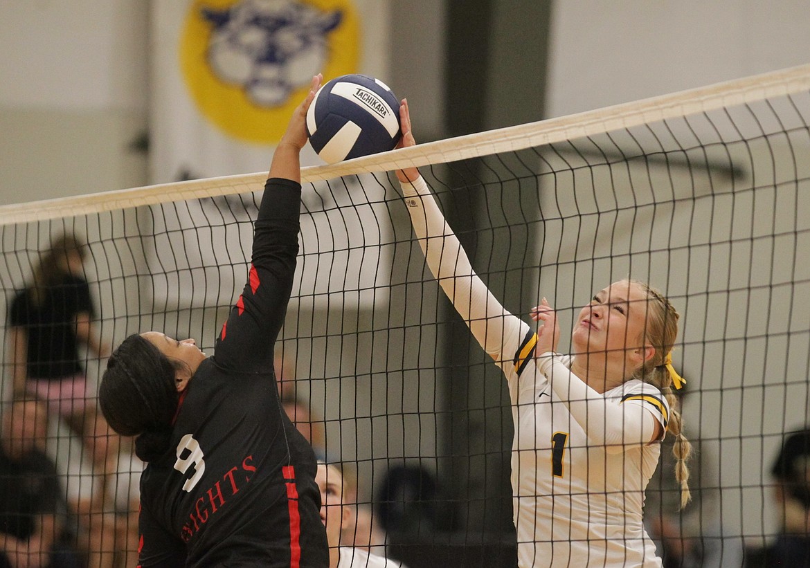 POST FALLS — Senior Tylah Lambert had six kills, 13 assists, four digs and a block as the visiting Knights beat the Jaguars 25-17, 25-14, 25-15 in Scenic Idaho Conference play Thursday night at The Courts at Real Life.