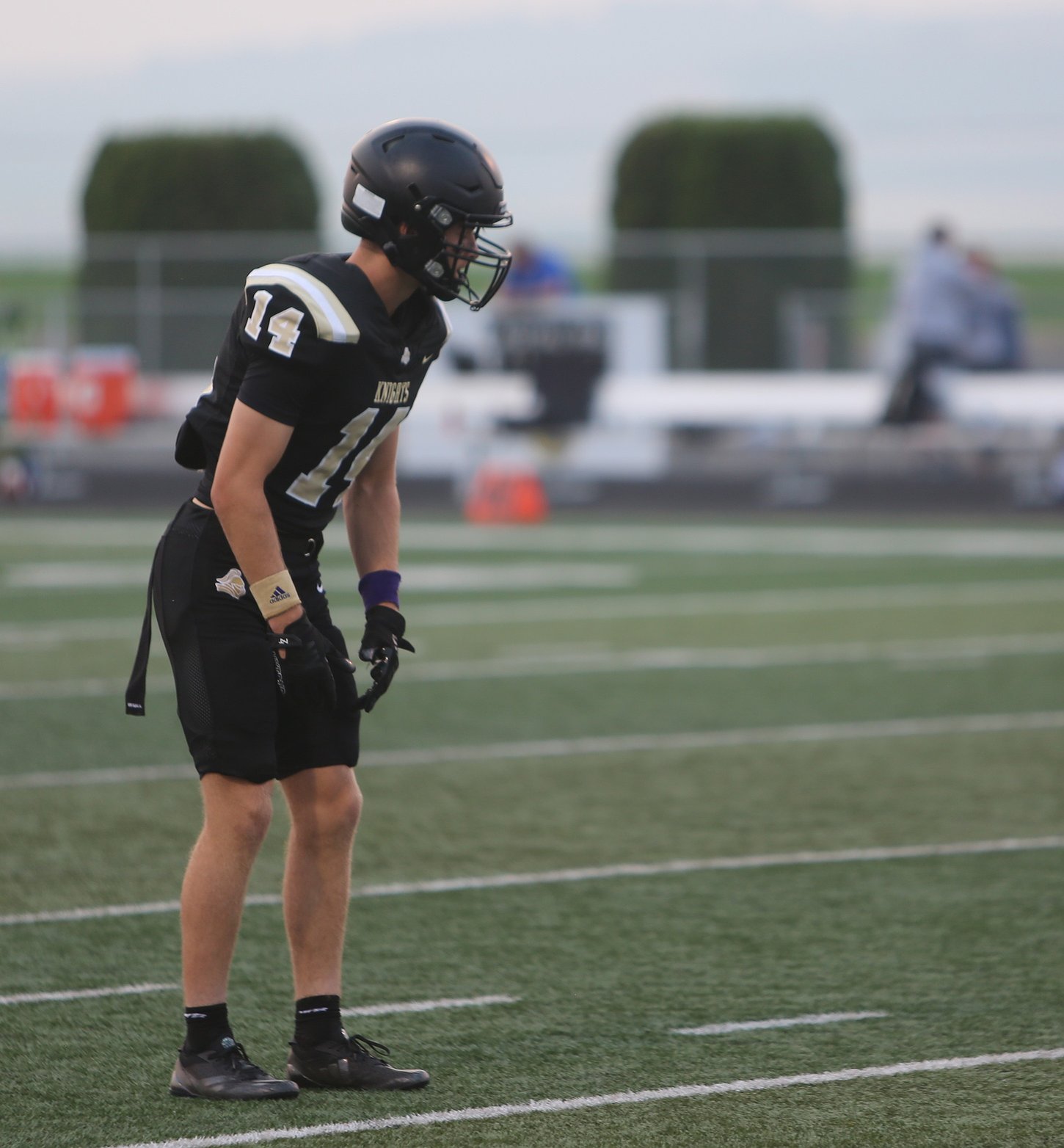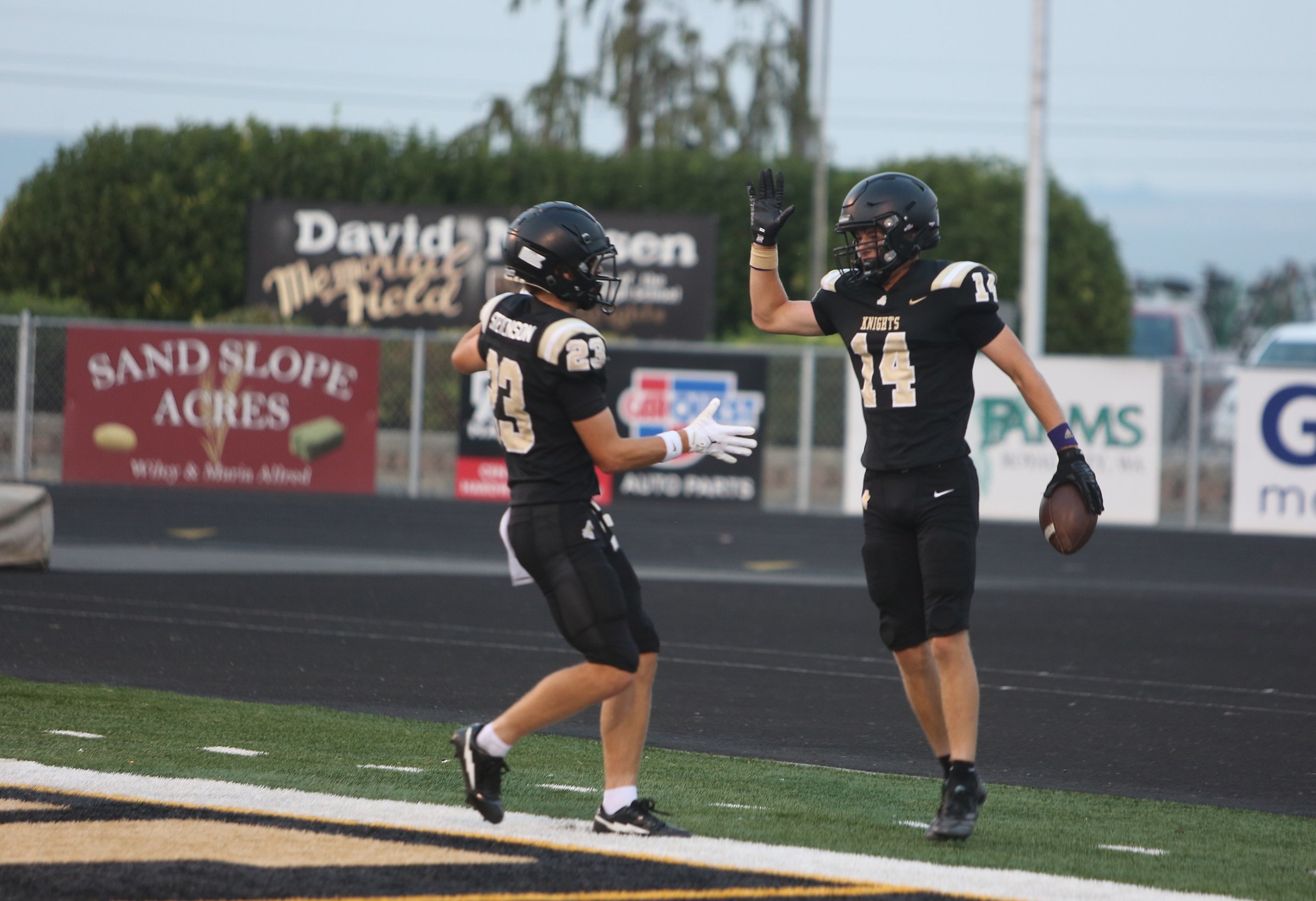 In the first quarter, Manny Ruvalcaba kicked off the Knights' impressive scoring spree with a pick-six on the first drive of the game, and the Knights took a 7-0 lead. After another Knights interception, quarterback Grant Wardenaar found Fischer Livingston for a 30-yard touchdown pass, increasing their lead to 14-0.
