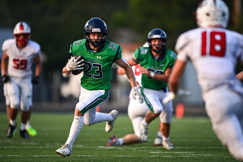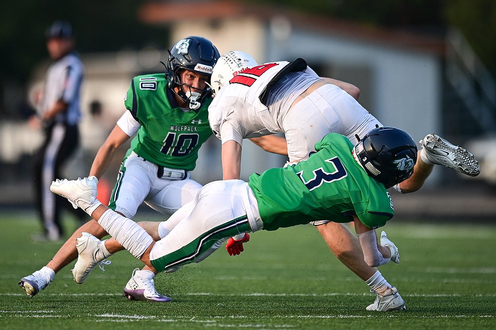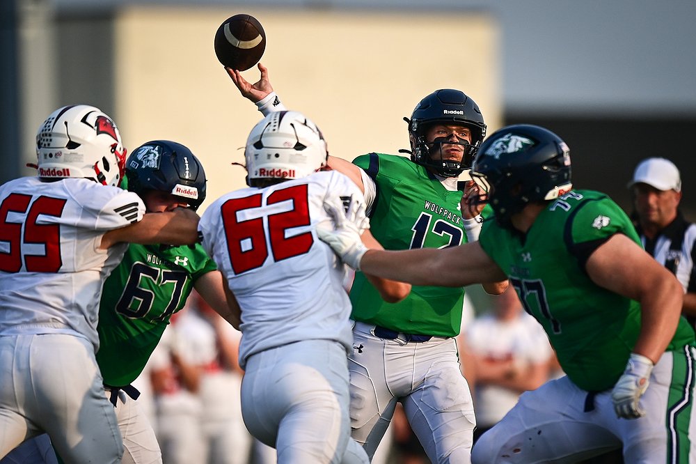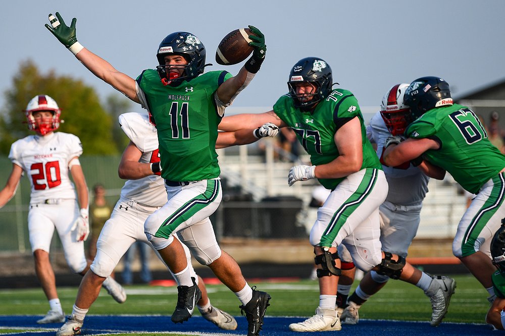 Pelc’s interception made it 14-0 less than four minutes in. The Wolfpack defense forced a pair of three-and-outs for the Hawks, and Glacier turned the short fields into more points. First, Presley found Hunter Daniels on a 10-yard pitch and catch, and then Knopik found the first of his three scores on a three-yard carry to make it 28-0 with one minute left in the first quarter.