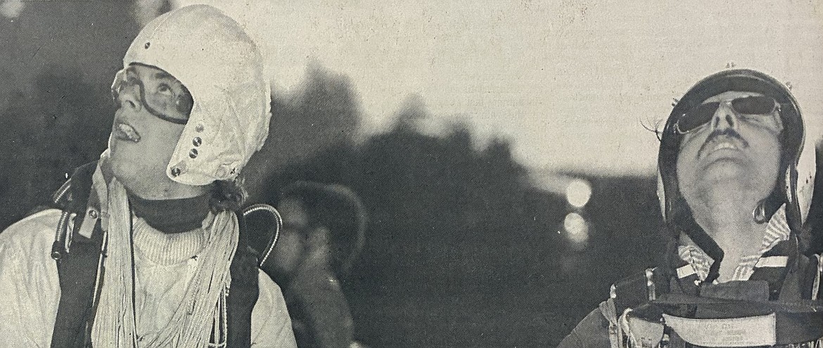 • Need for speed: Skydivers enjoy their sport for various reasons. But speed motivated Jeff Wragg of the Henley Hummers. Said he: “It is possible to go 200 miles per hour in freefall.” In September 1975, Wragg’s Hummers of the old Henley Aerodrome (now Silverwood) entertained county fair goers with an 11-person air formation. At the time, they held the Idaho record with a 20-person formation.