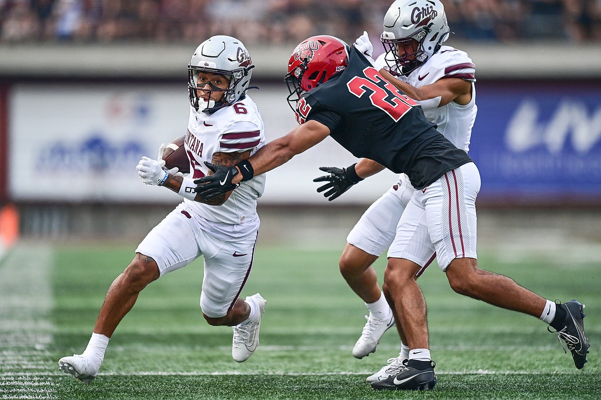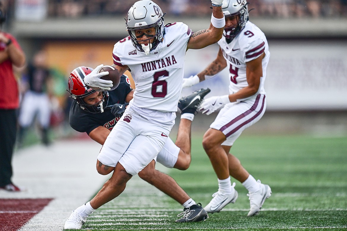 Grizzlies wide receiver Michael Wortham (6) picks up yardage on a run in the second quarter against Central Washington on Saturday, Sept. 6. (Casey Kreider/Daily Inter Lake)