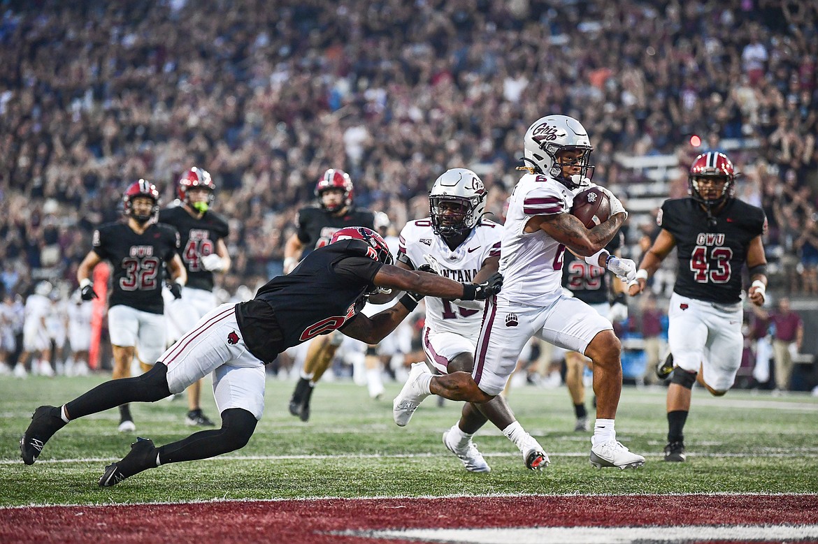 Grizzlies wide receiver Michael Wortham (6) scores a touchdown on a 76-yard reception in the third quarter against Central Washington on Saturday, Sept. 6. (Casey Kreider/Daily Inter Lake)