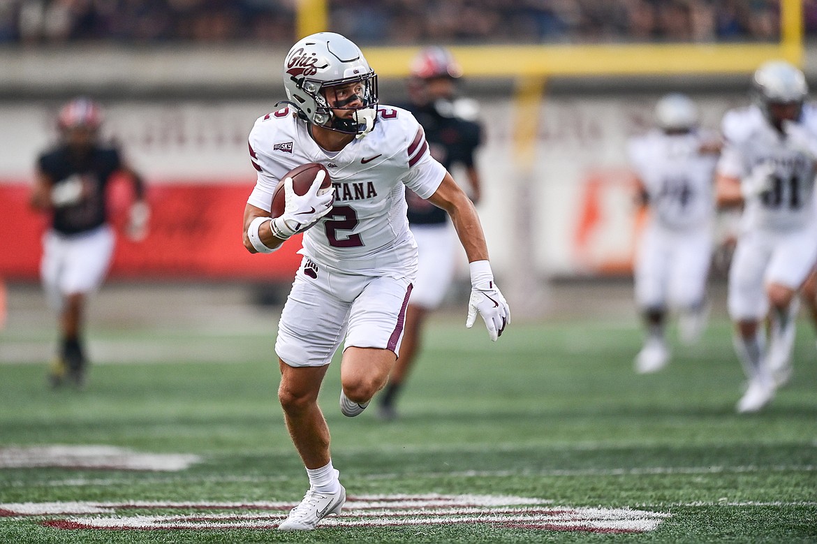 Grizzlies punt returner Drew Deck (2) looks for space along the sideline on a return in the third quarter against Central Washington on Saturday, Sept. 6. (Casey Kreider/Daily Inter Lake)