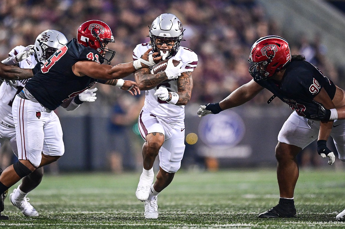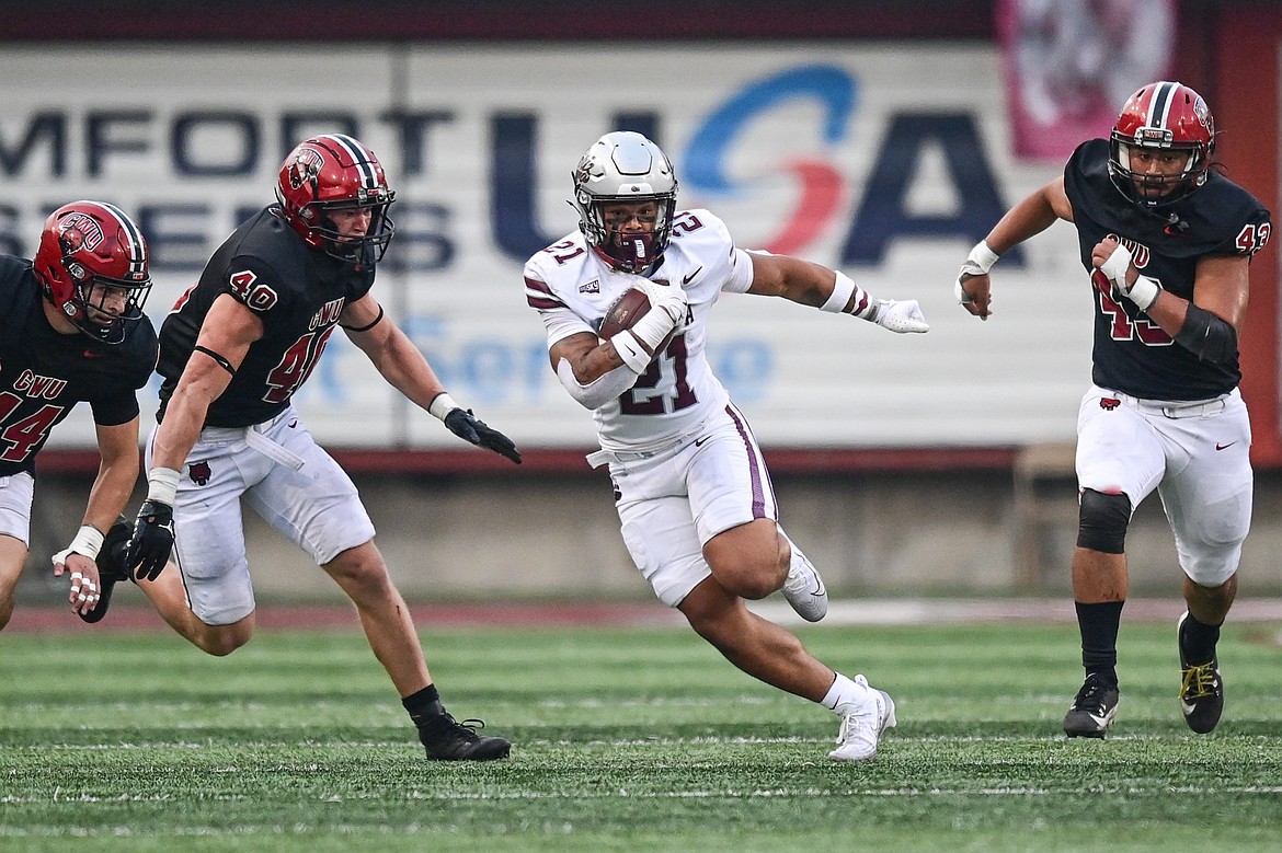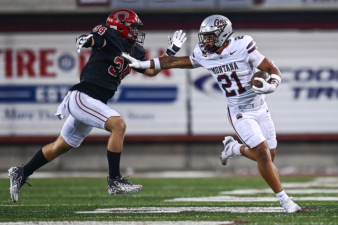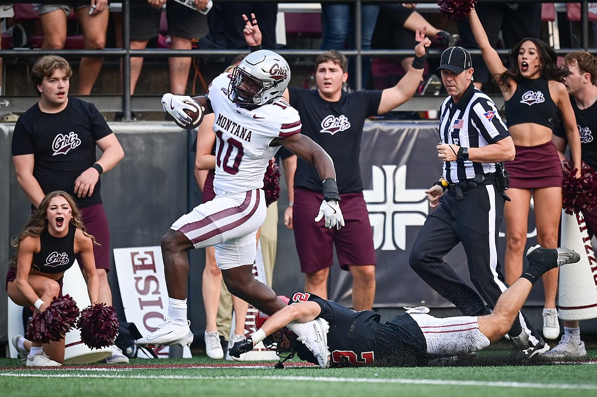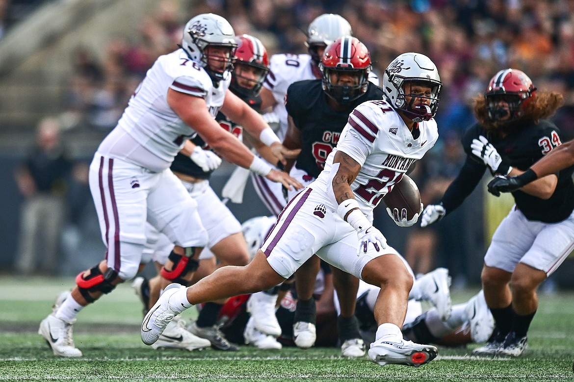 Grizzlies running back Stevie Rocker Jr. breaks a 25-yard run in the first quarter against Central Washington at Washington-Grizzly Stadium on Saturday, Sept. 6. (Casey Kreider/Daily Inter Lake)