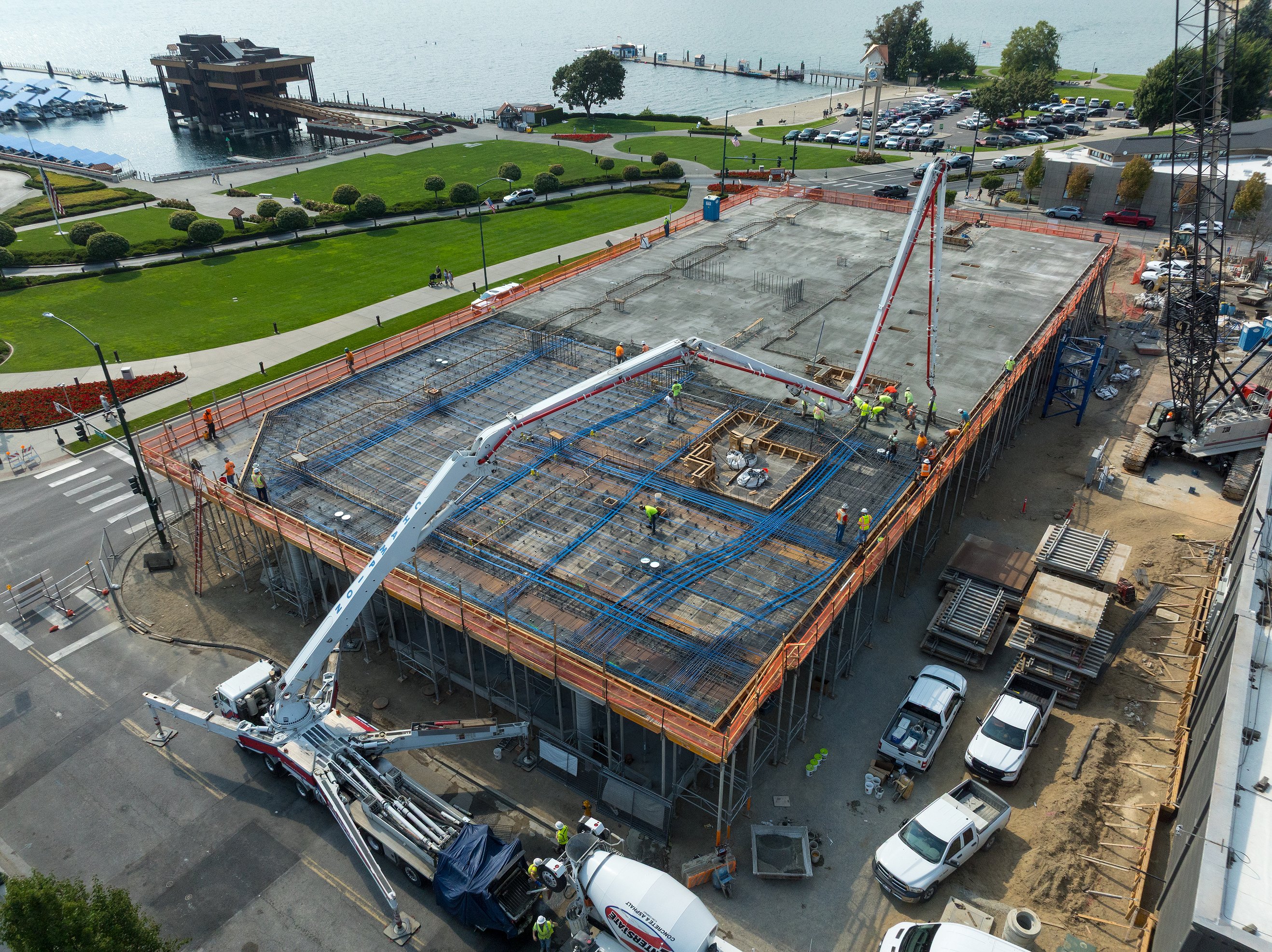 Eight hundred cubic yards of concrete were poured in one day to create the second floor of Hagadone Hospitality’s newest venture.