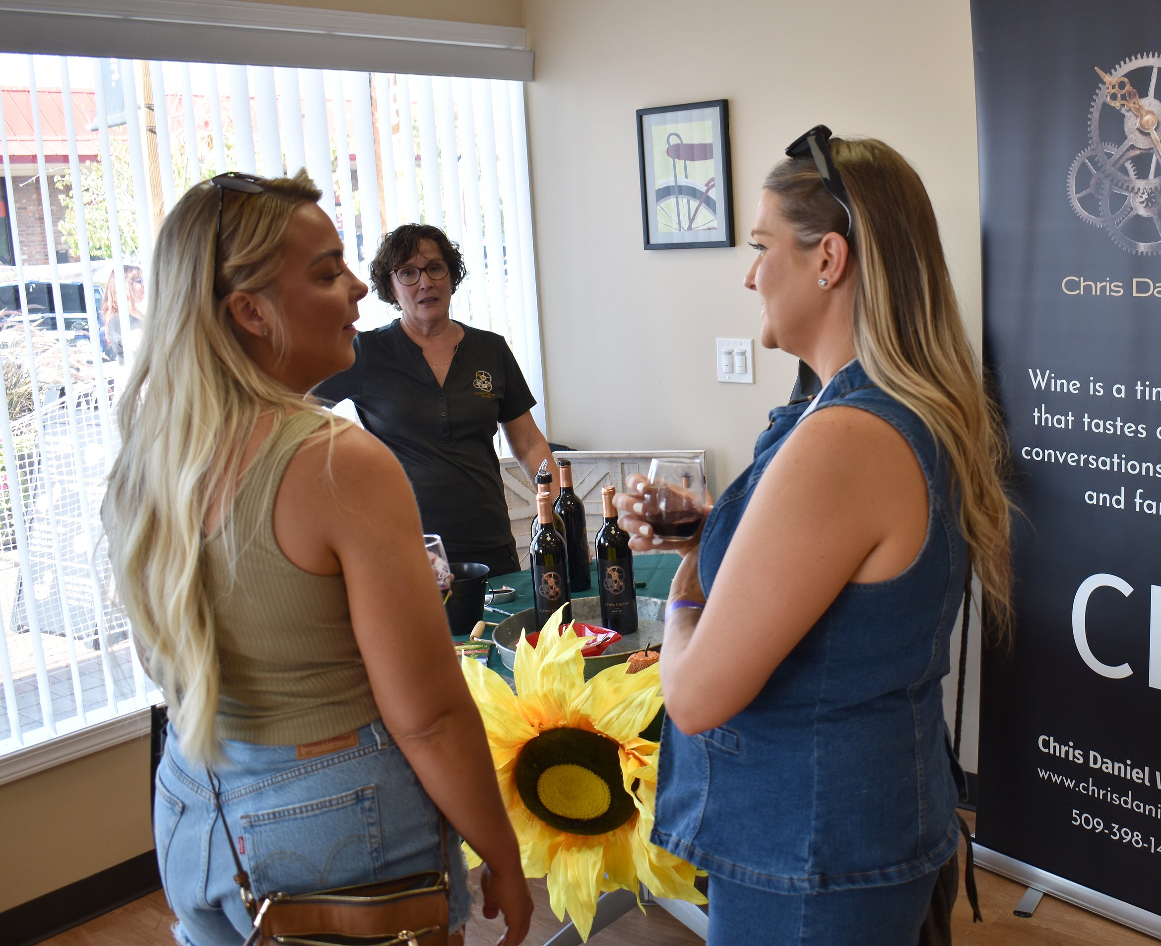 Merissa Stansbury and Katie Hill were on their sixth stop, they said, at the Edward Jones office, where Chris Daniel Winery of Quincy was offering a Malbec and a red blend called Dakota Red.