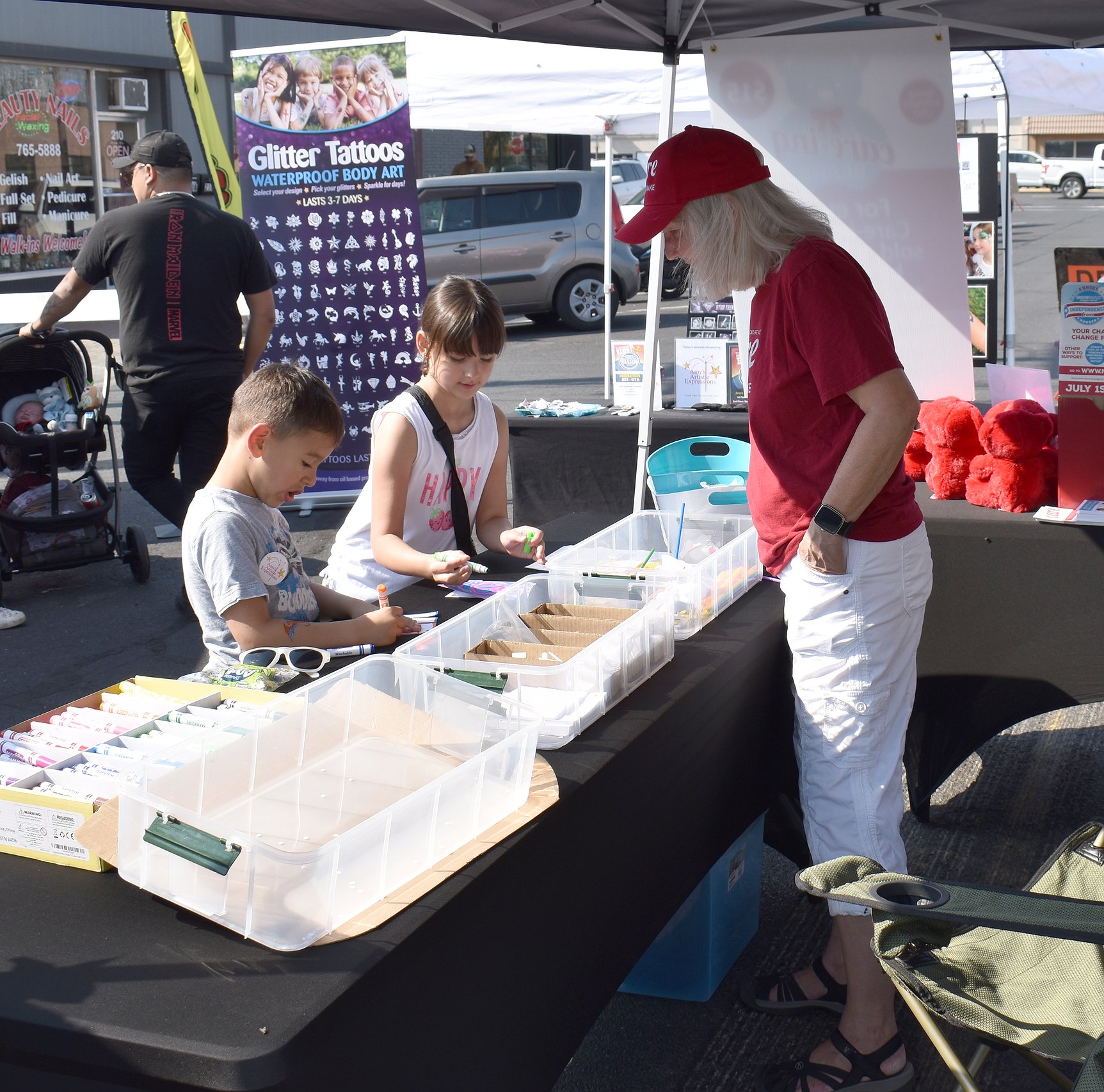 Over on Division Street, the Care Fair offered attendees a chance to check out some of the nonprofit organizations that serve the community. Organizations like Young Life, the Kiwanis Club and the Salvation Army had tables and information out for folks who wanted to volunteer or just find out more. Care Moses Lake, which organizes the Care Fair every year, had a table set up where children could make paper pinwheels and was giving away apples from Okanagan Specialty Fruits and teddy bears called “Caring Bears.”