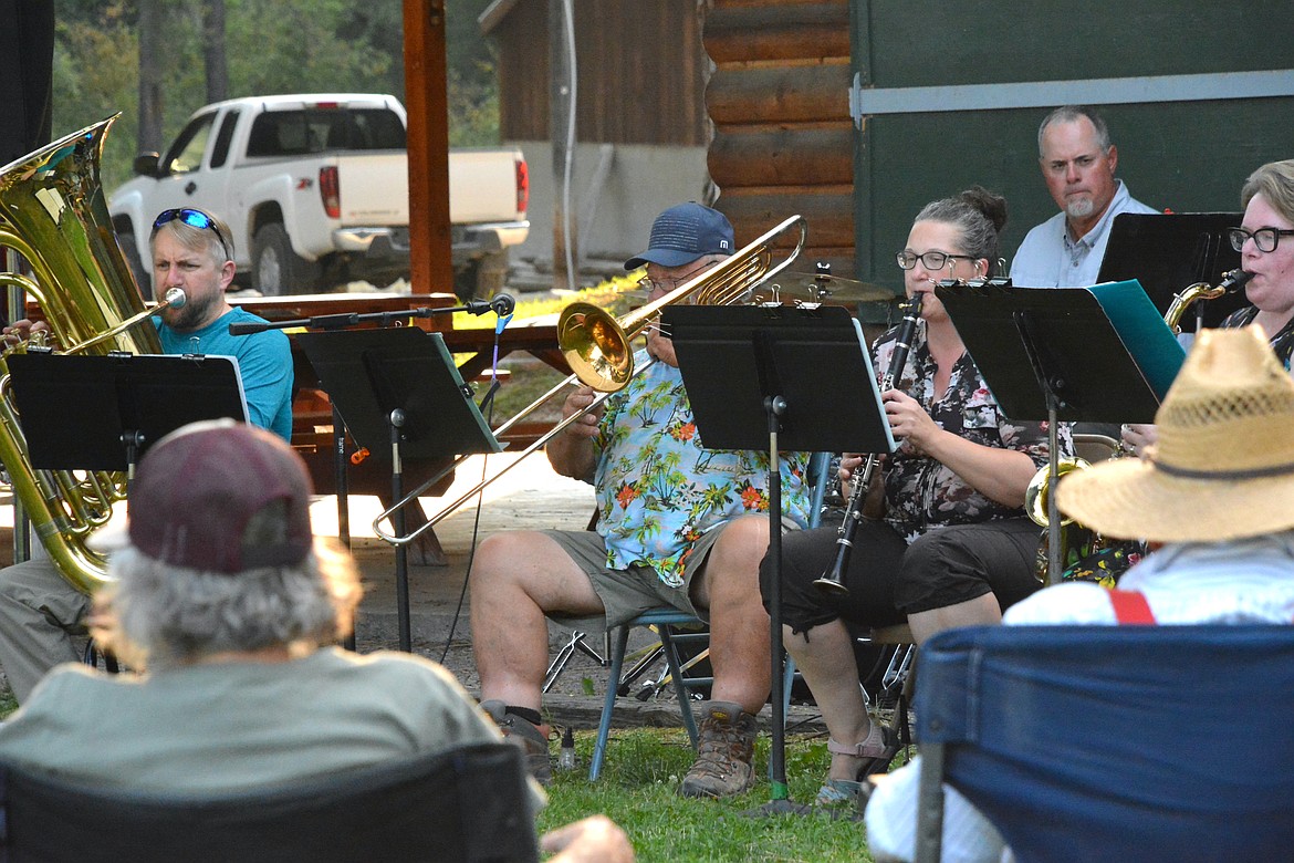 After a sweltering hot September day, the Mineral County Dixieland Band put on a toe-tapping outdoor concert at the St. Regis Community Park last Tuesday evening. The audience who couldn't help but sway along to various traditional jazz tunes and melodies enjoyed the performance from lawn chairs in the shaded grass. The volunteer group that's played together for over five years now is made up of Derek and Shelly Larson, Denley Loge, Matt Eisenbacher, Dawn Hammermeister, Amber Winter, and Richard Little. (Mineral Independent/Amy Quinlivan)