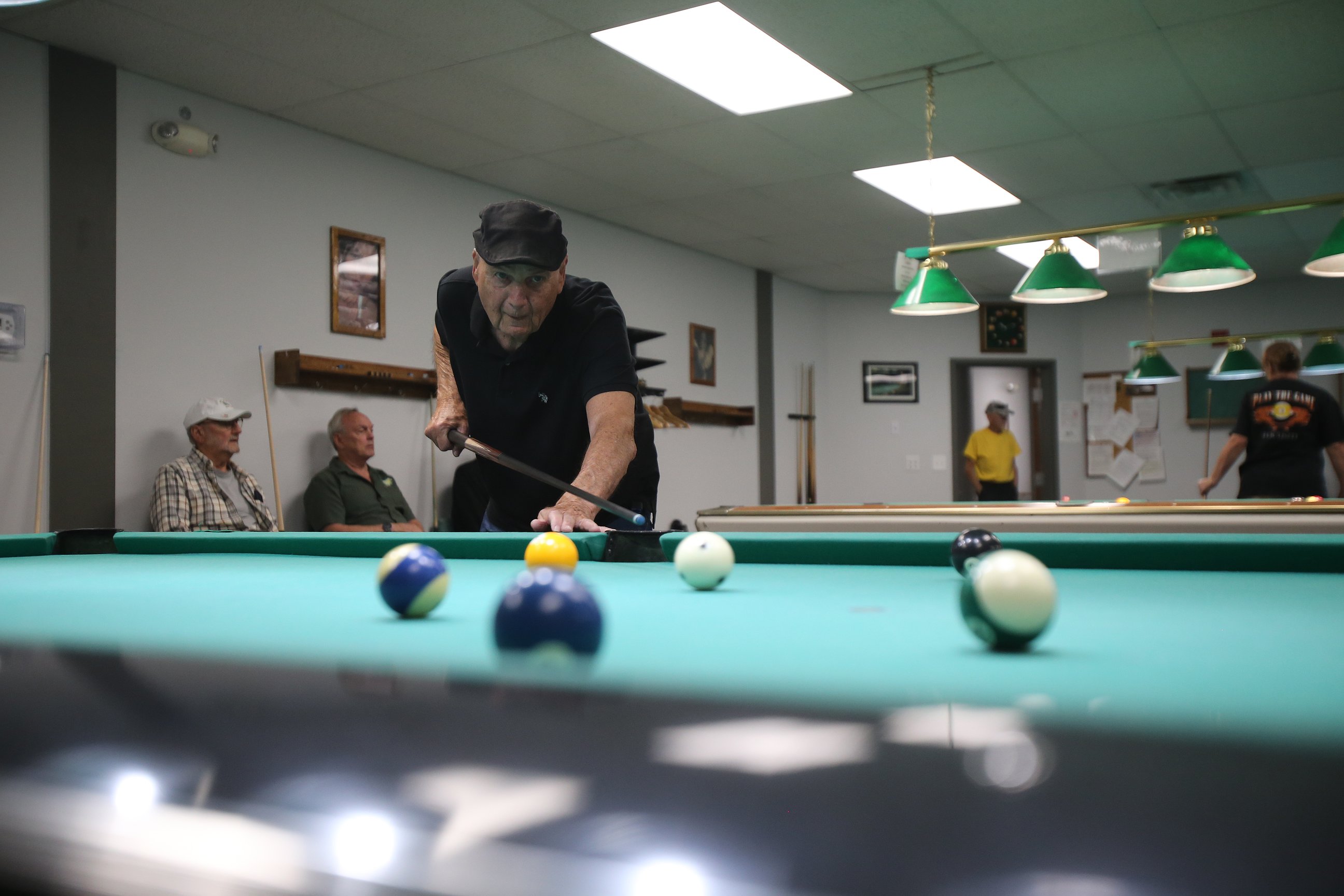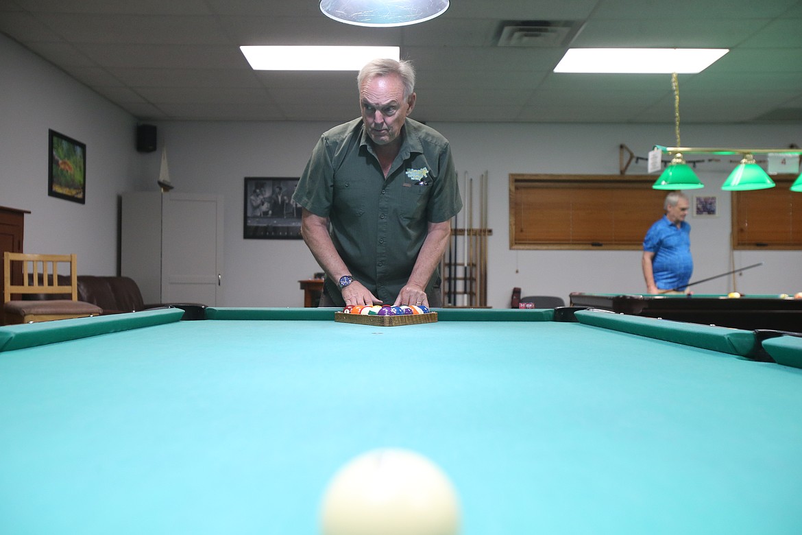 "I came for a different purpose than most people do," said Bill Ramich of Post Falls, who had the distinction of being the morning's longest-lived player at 84. He's played pool at the center for 21 years, almost always five days a week.